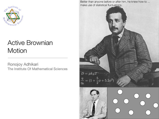 1. Active Brownian Motion Ronojoy Adhikari The Institute Of Mathematical Sciences