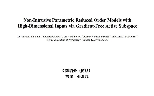 文献紹介 / Non-Intrusive Parametric Reduced Order Models withHigh-Dimensional Inputs via Gradient-Free Active Subspace
