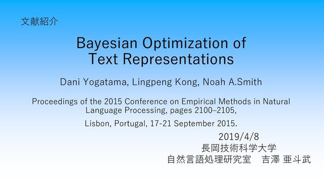 Bayesian Optimization of Text Representations Dani Yogatama, Lingpeng Kong, Noah