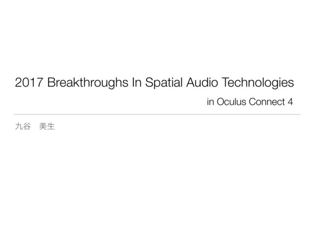 2017 Breakthroughs In Spatial Audio Technologies ୩ɹඒੜ in Oculus Connect