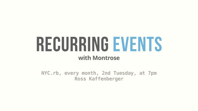 Introduction to the Montrose gem for modeling recurring events in Ruby. Learn more: http://bit.ly/1U3RDA7