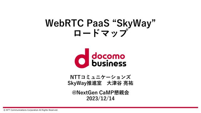 ロードマップ NTTコミュニケーションズ SkyWay推進室 ⼤津⾕ 亮祐 @NextGen CaMP懇親会 2023/12/14