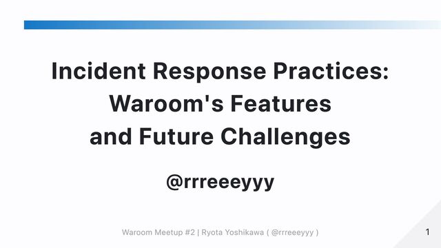 Waroom Meetup #2 で Incident Response Practices: Waroom's Features and Future Challenges というタイトルで発表しました。