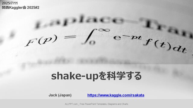 Free PowerPoint Templates, Diagrams and Charts Jack (Japan) https://www.kaggle.com/rsakata shake-upを科学する 2025/7/11 関西Kaggler会 2025#2