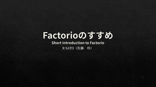 工場を自動化するシミュレーションゲームである「Factorio」の簡単な紹介資料です。
