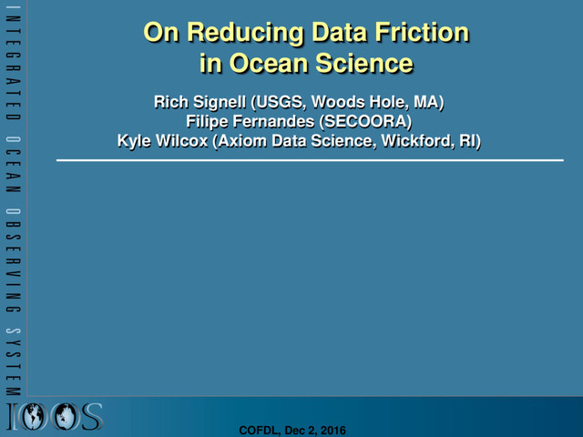 Layer, reducing data friction • Standards exist for: models, remotely-sensed data, points, time series, ADCP, trajectories (glider, AUV) • Science notebooks can be dynamic and reusable • Easy to install standard services or just pass to IOOS or NCEI • Your data should live here