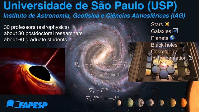 This is a summary of the application process for the graduate program in astrophysics—MsC and PhD—at Instituto de Astronomia, Geofísica e Ciências Atmosféricas (IAG), Universidade de São Paulo (USP), as of mid 2019.
