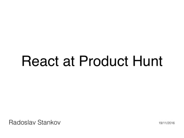At ProductHunt we use React for almost 2 years. In the talk, I'm going to share some of the things we learned during that period.