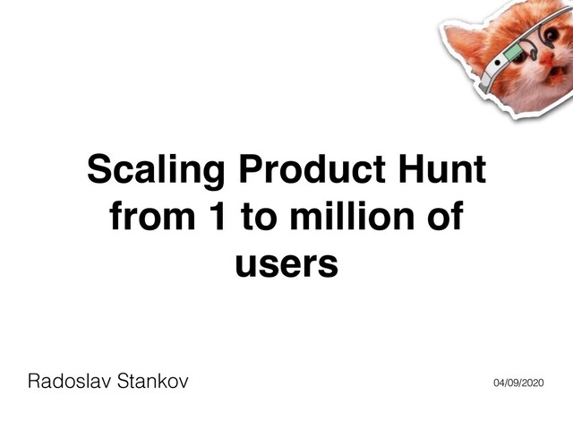 How the Product Hunt team was able to scale our systems from 1 user to millions of users. The Talk is focused on our process and technology choices.