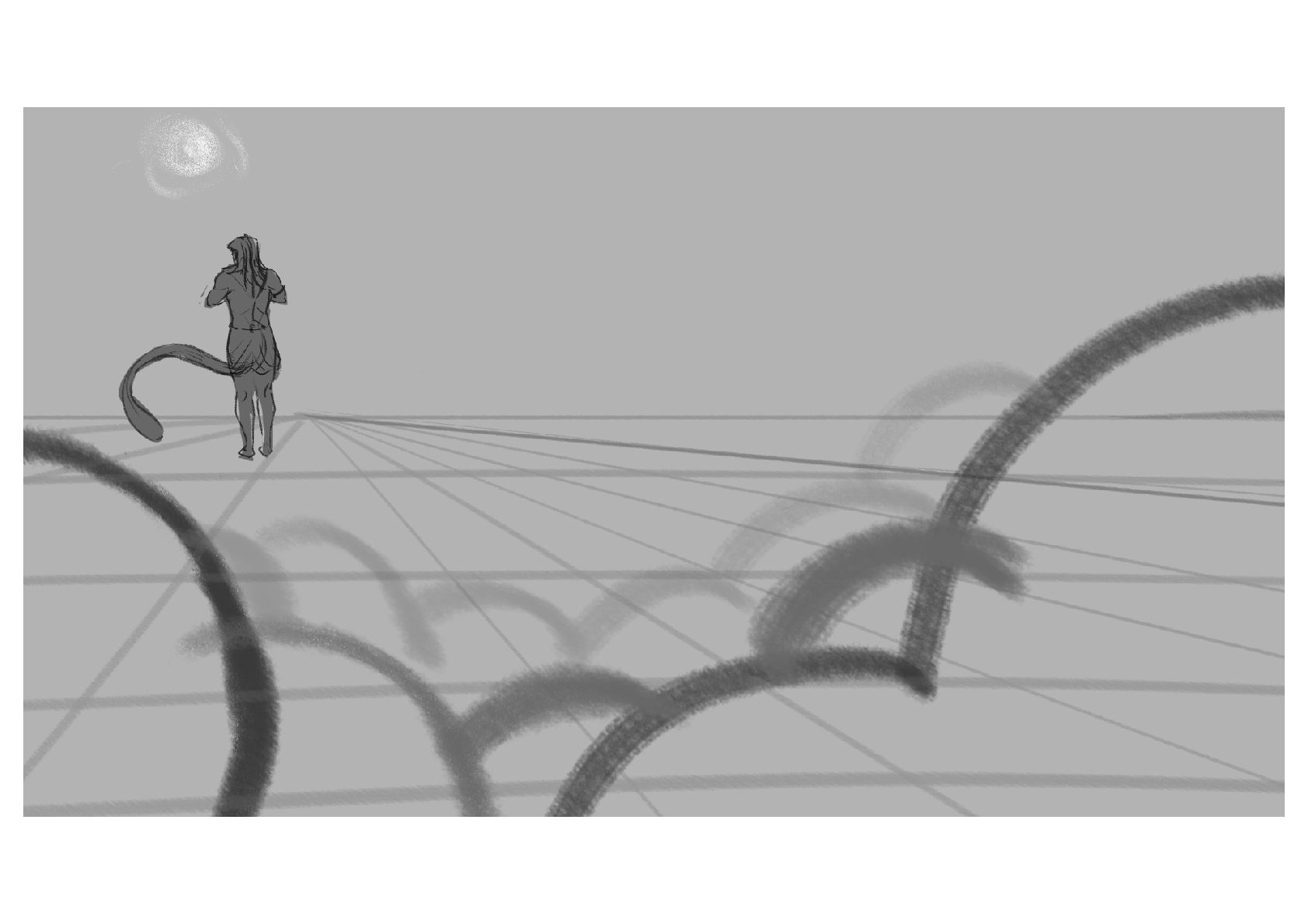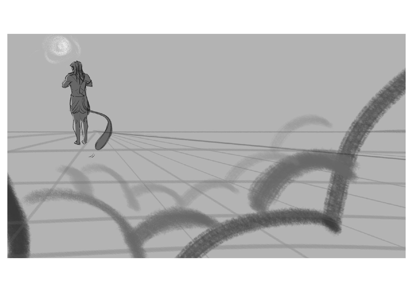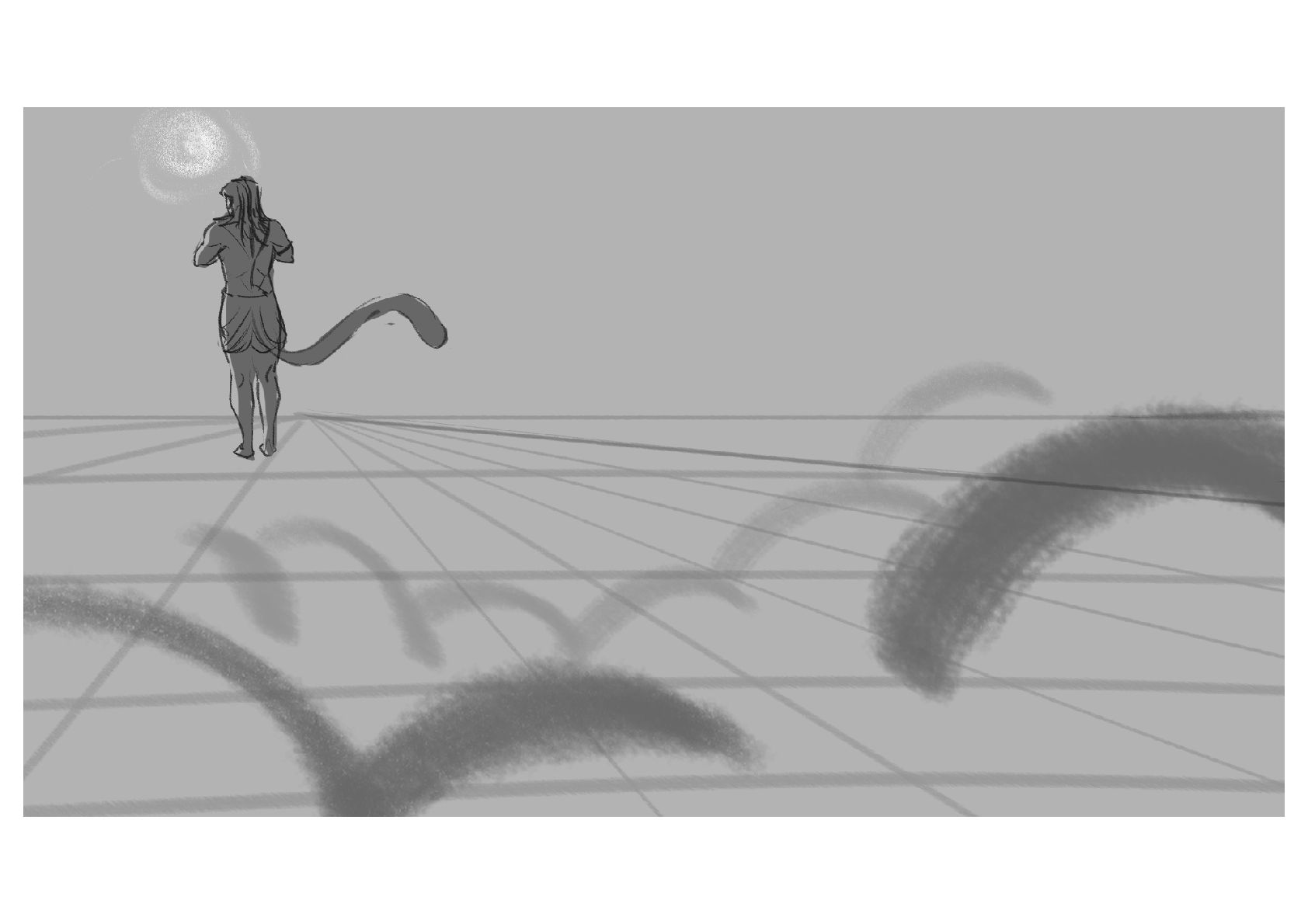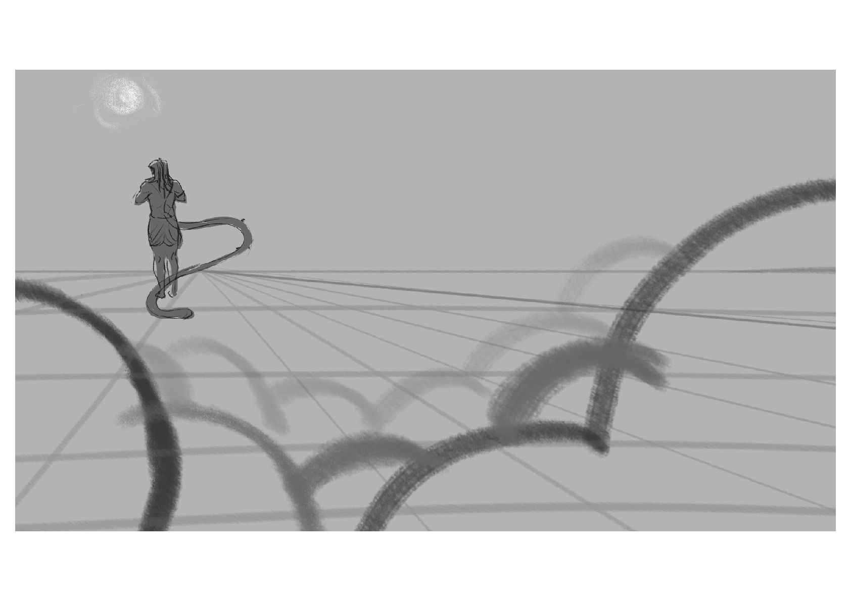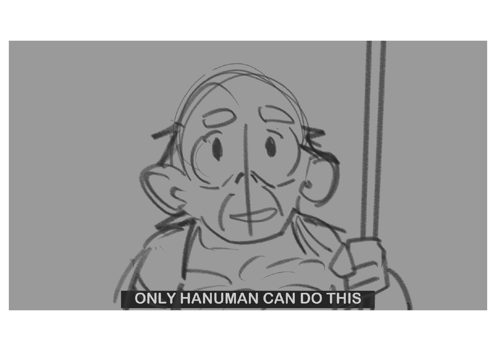 Hanuman, a mythical being, prepares to leap across the ocean to reach the demonic land of Lanka.