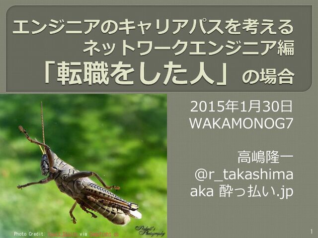 若者向けのセッションでネットワークエンジニアのキャリアパスについて語ったセッションの資料。当時は外資系やスタートアップに転職した立場としてキャリアパス戦略についてプレゼンしました。