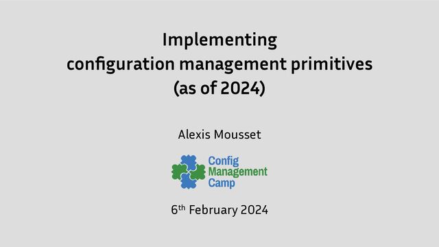 Configuration management primitives appear like a solved topic now, and current major solutions have converged to pretty similar choices 10+ years ago. However new needs are becoming more prominent, like observability, auditing and self-auditing abilities, in a context of growing attention for security topics. Could we benefit from reconsidering some of these design choices now to better address them?