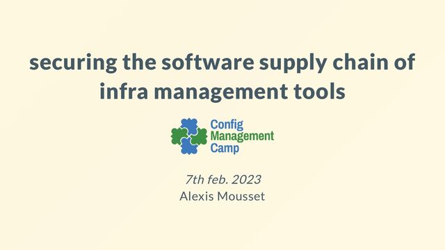 Infrastructure management tools have a special place among software regarding security, as they usually run ubiquitously, with high privileges and a relatively high attack surface. This makes them targets of choice, especially in the current context of increased threats on software supply chains.