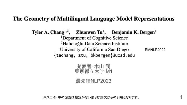 発表者:木山 朔 東京都立大学 M1 最先端NLP2023 1 ※スライド中の図表は指定がない限りは論文からの引用となります。 EMNLP2022