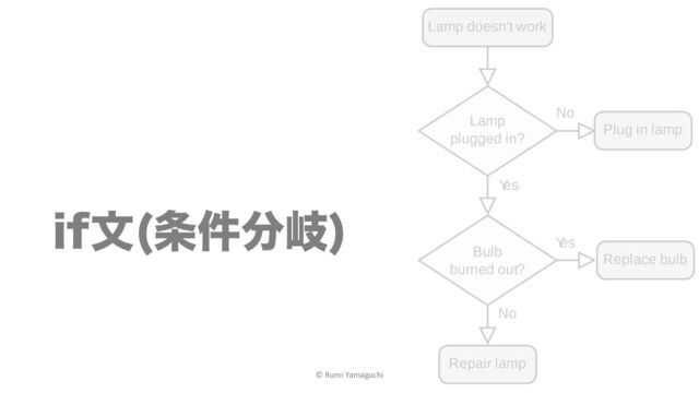 JGจ 5SVFͷ߹ 前回まで 条件分岐イメージ if⽂ FAQ © Rumi Yamaguchi