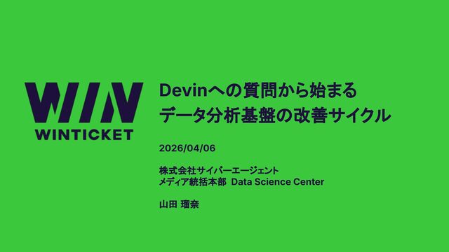 © 2025 WinTicket Inc. Devinへの質問から始まる データ分析基盤の改善サイクル 2026/04/06 株式会社サイバーエージェント メディア統括本部 Data