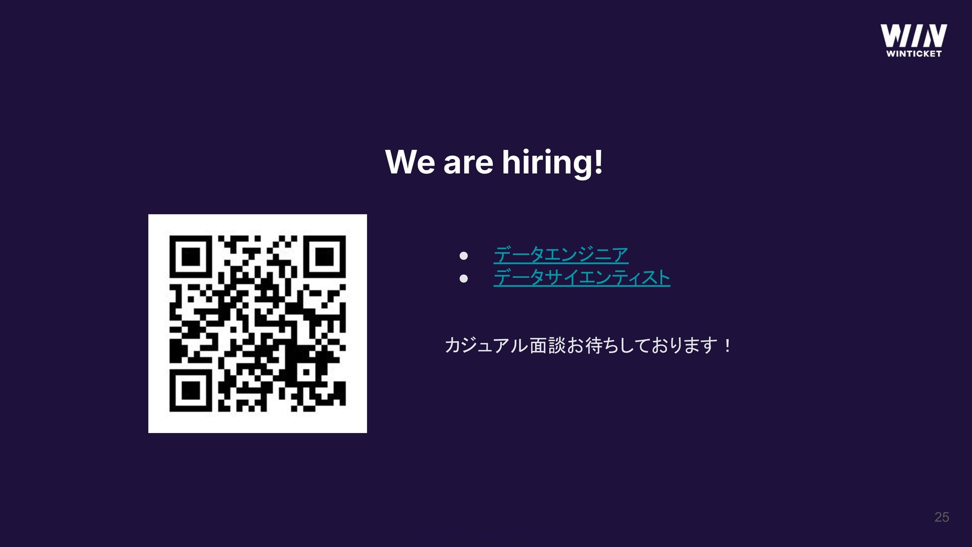 We are hiring! 25 • データエンジニア • データサイエンティスト カジュアル面談お待ちしております!