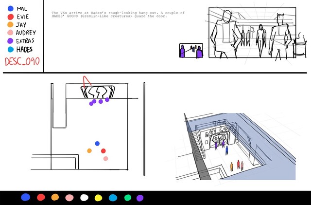 Thumbnails for storyboard sequence 090 of disney Descendants: The Royal Wedding. With top down.
