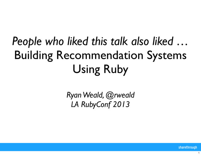 People who liked this talk also liked … Building Recommendation Systems Using Ruby