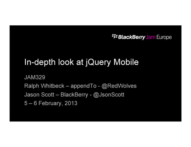 BlackBerry Jam Europe - JAM 329 - In-depth look at jQuery Mobile