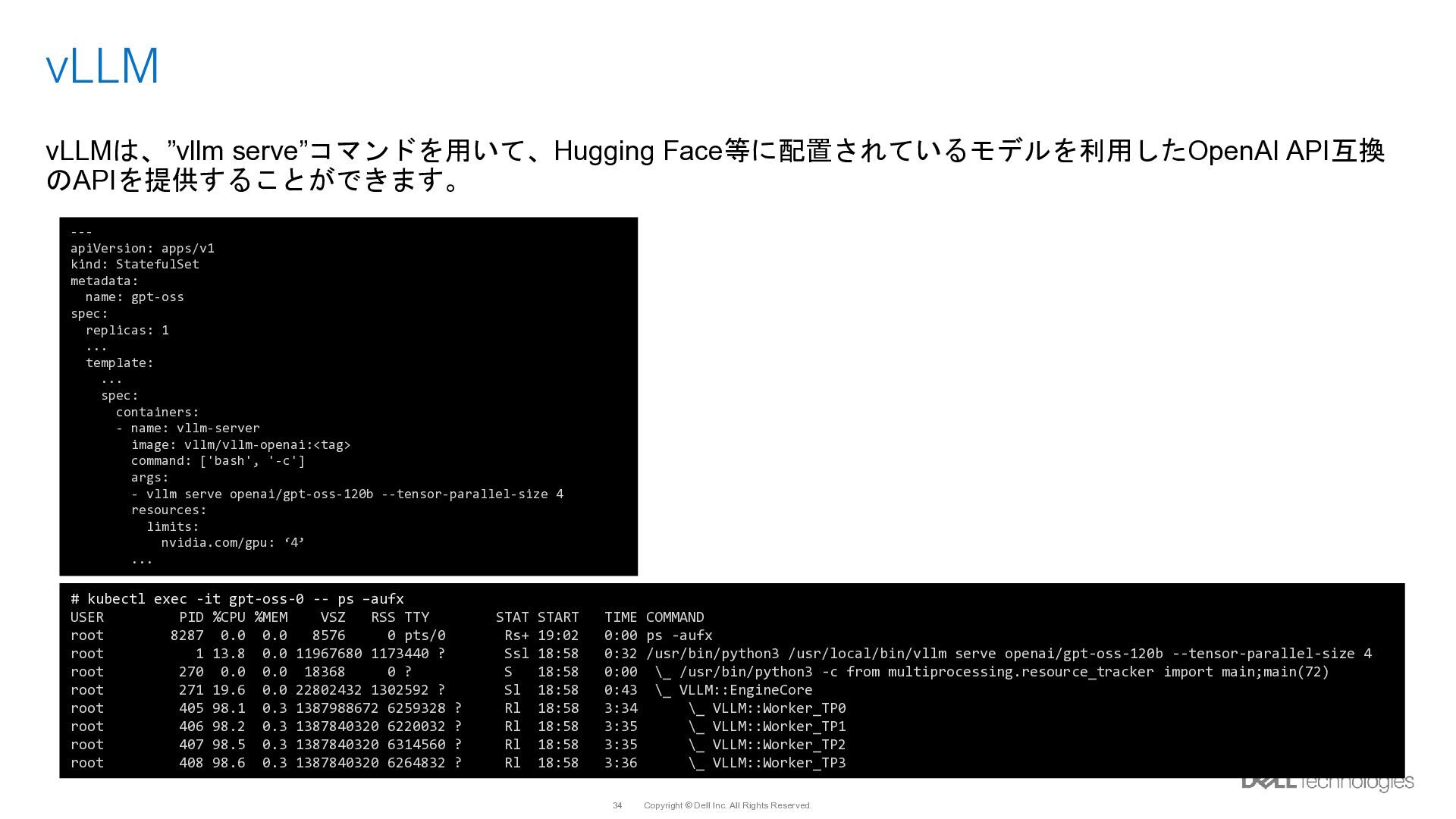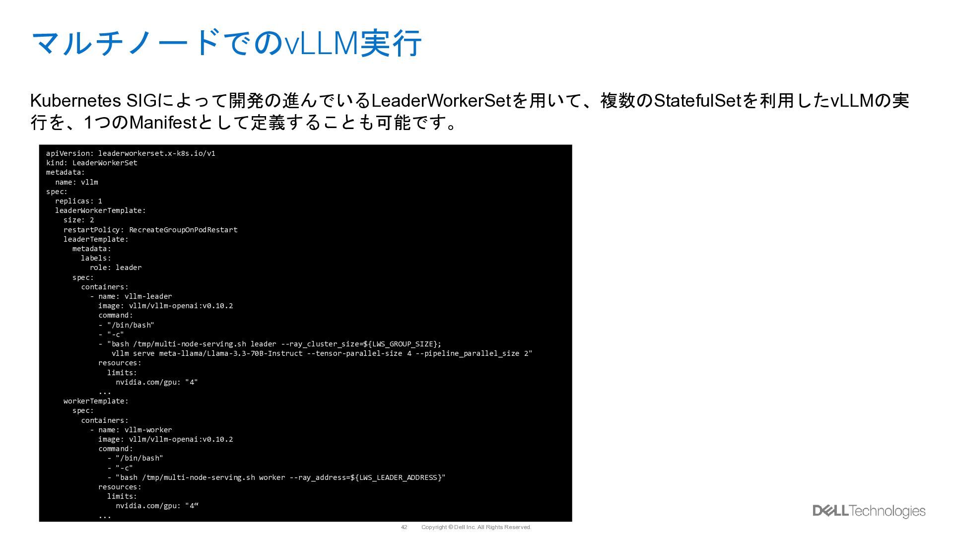 35. Copyright © Dell Inc. All Rights Reserved. 42 マルチノードでのvLLM実行 Kubernetes