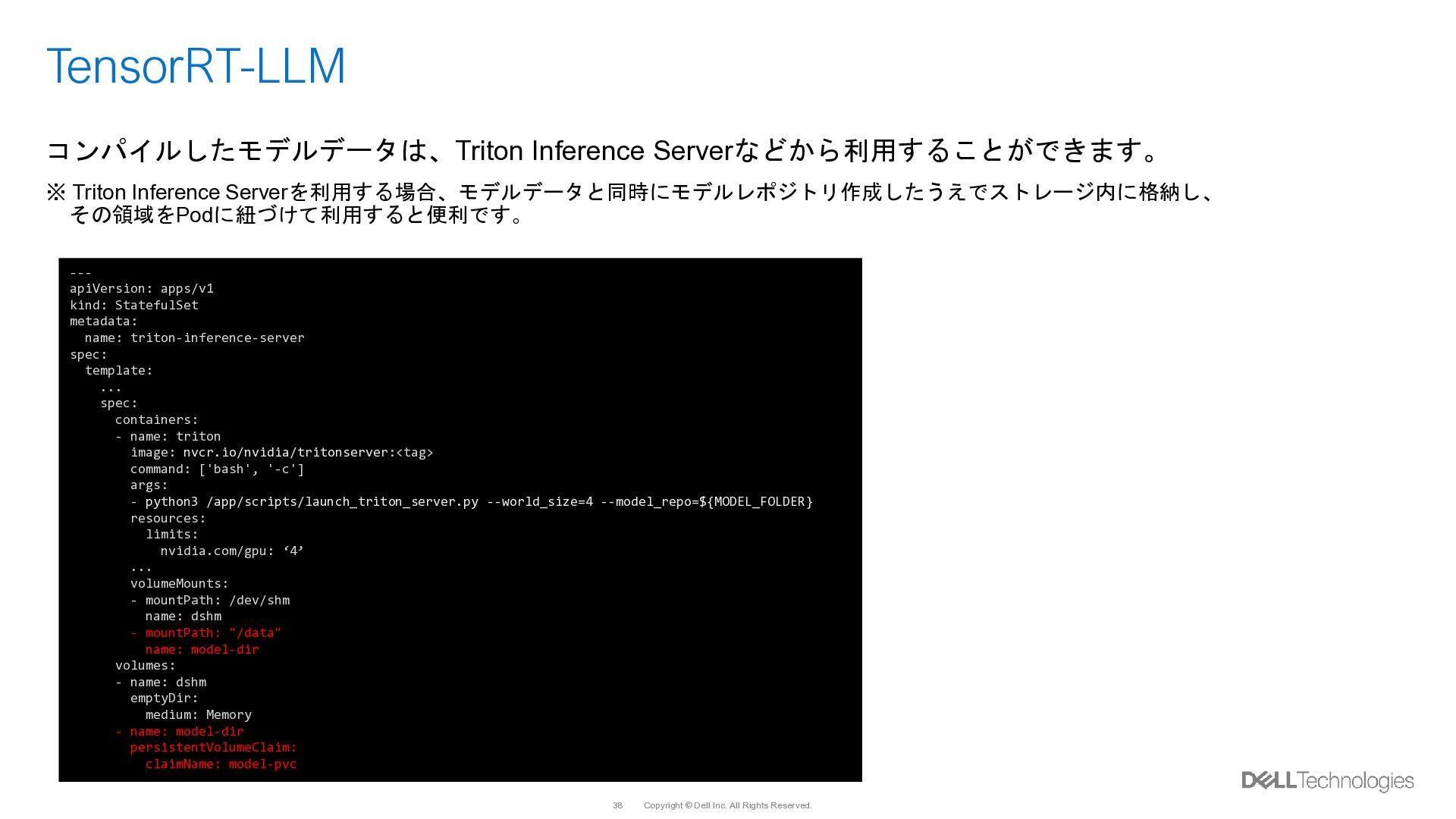 32. Copyright © Dell Inc. All Rights Reserved. 38 TensorRT-LLM コンパイルしたモデルデータは、Triton