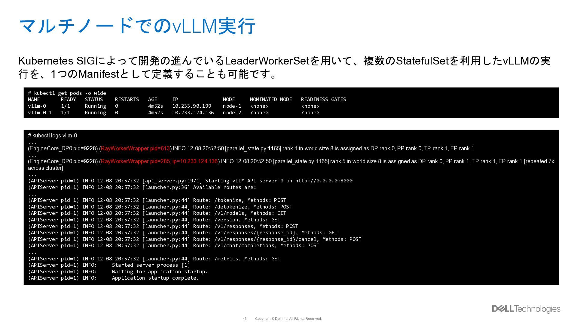 36. Copyright © Dell Inc. All Rights Reserved. 43 マルチノードでのvLLM実行 Kubernetes