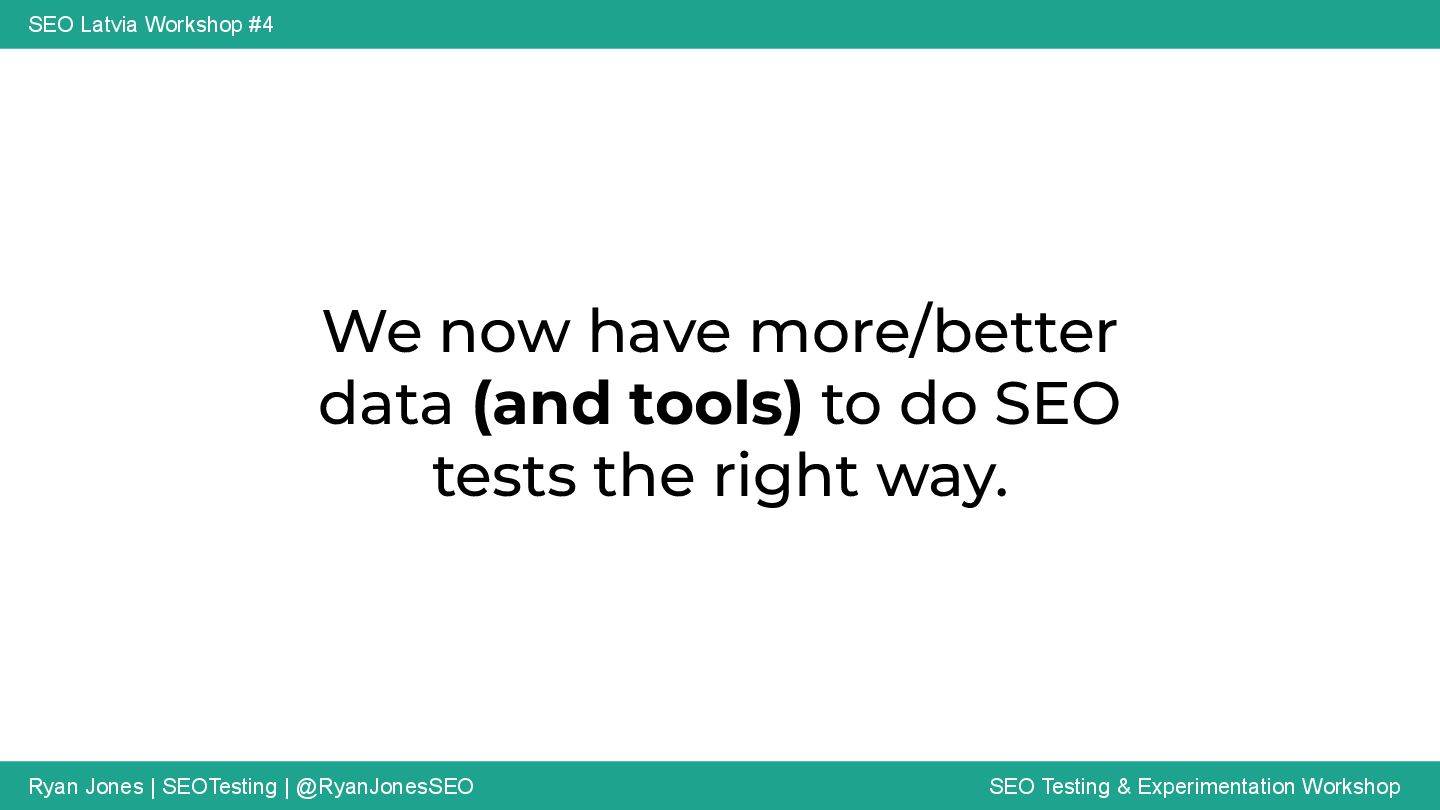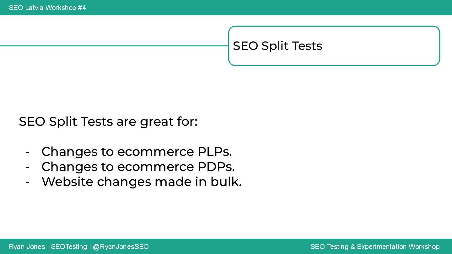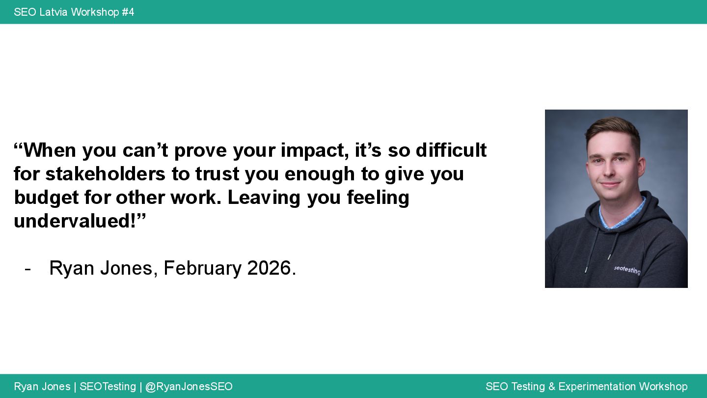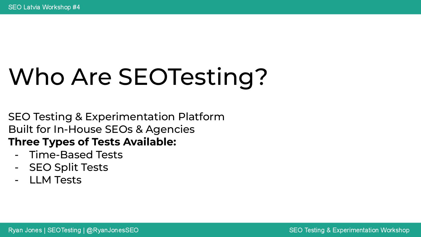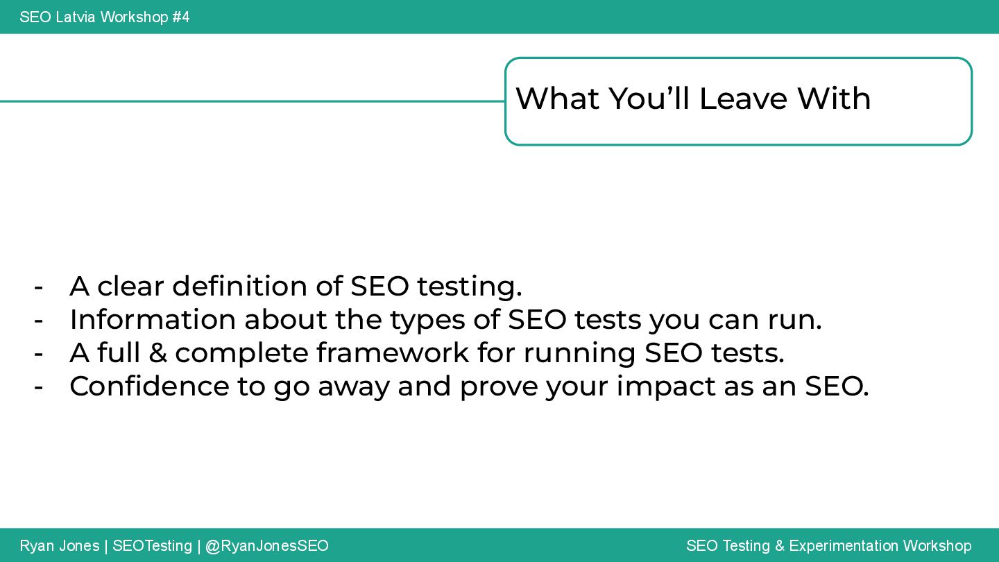 In this workshop from SEO Latvia Meetup #4, Ryan Jones (Marketing Manager at SEOTesting) walks through a complete SEO experimentation framework designed to help SEOs: