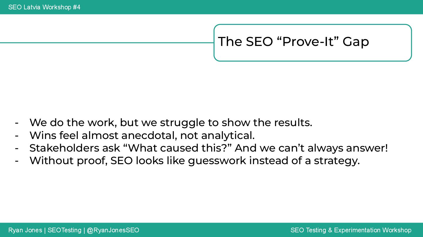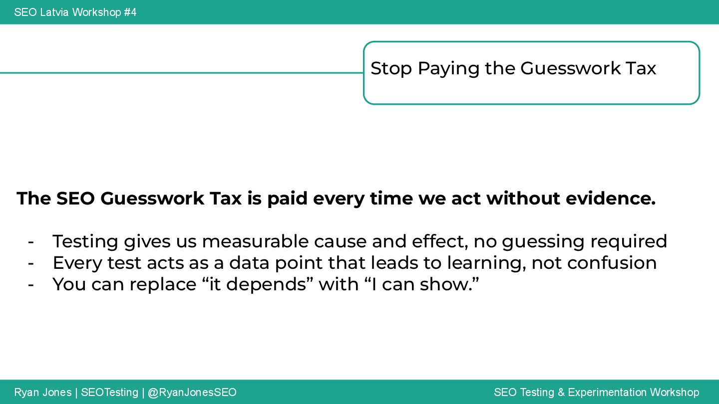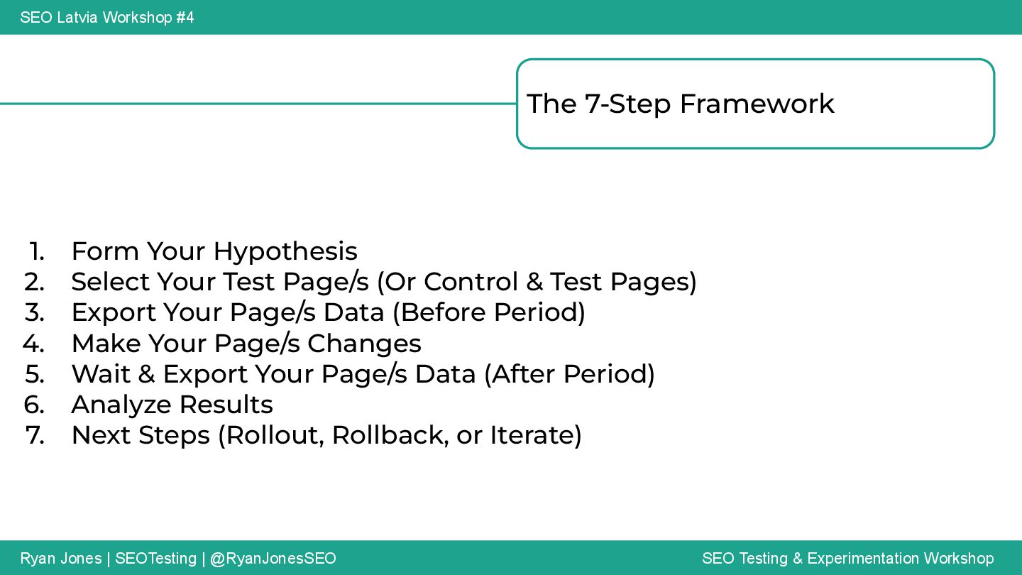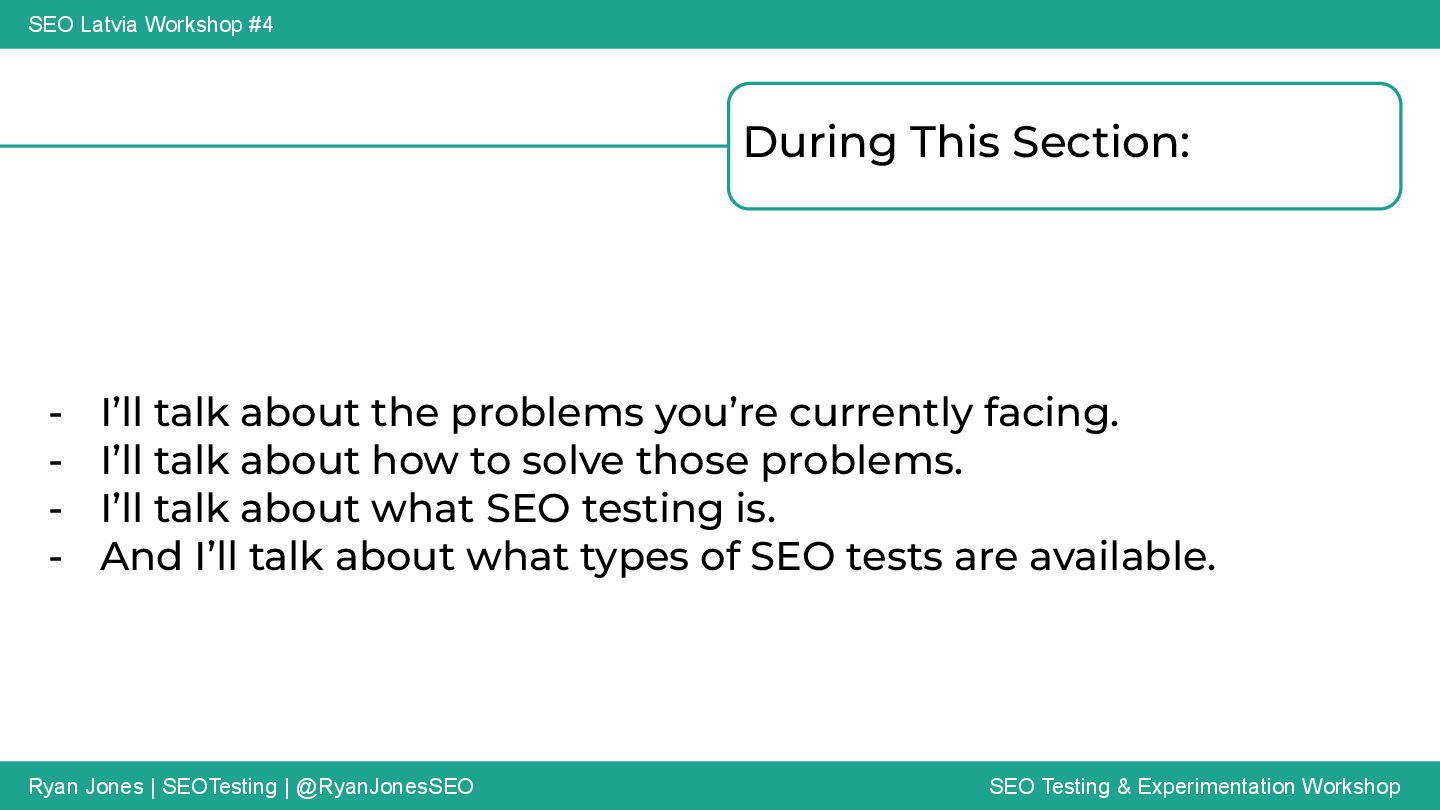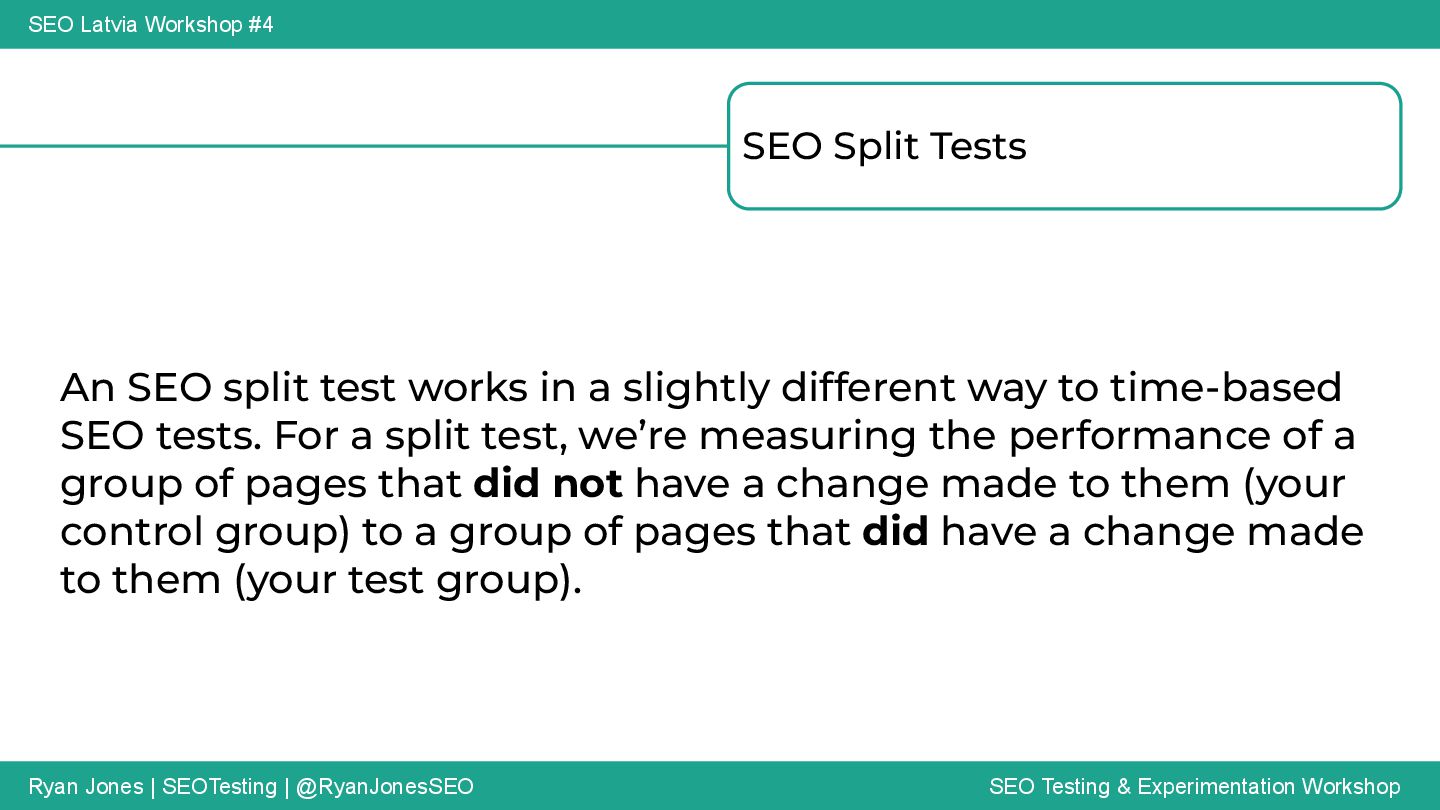 In this workshop from SEO Latvia Meetup #4, Ryan Jones (Marketing Manager at SEOTesting) walks through a complete SEO experimentation framework designed to help SEOs: