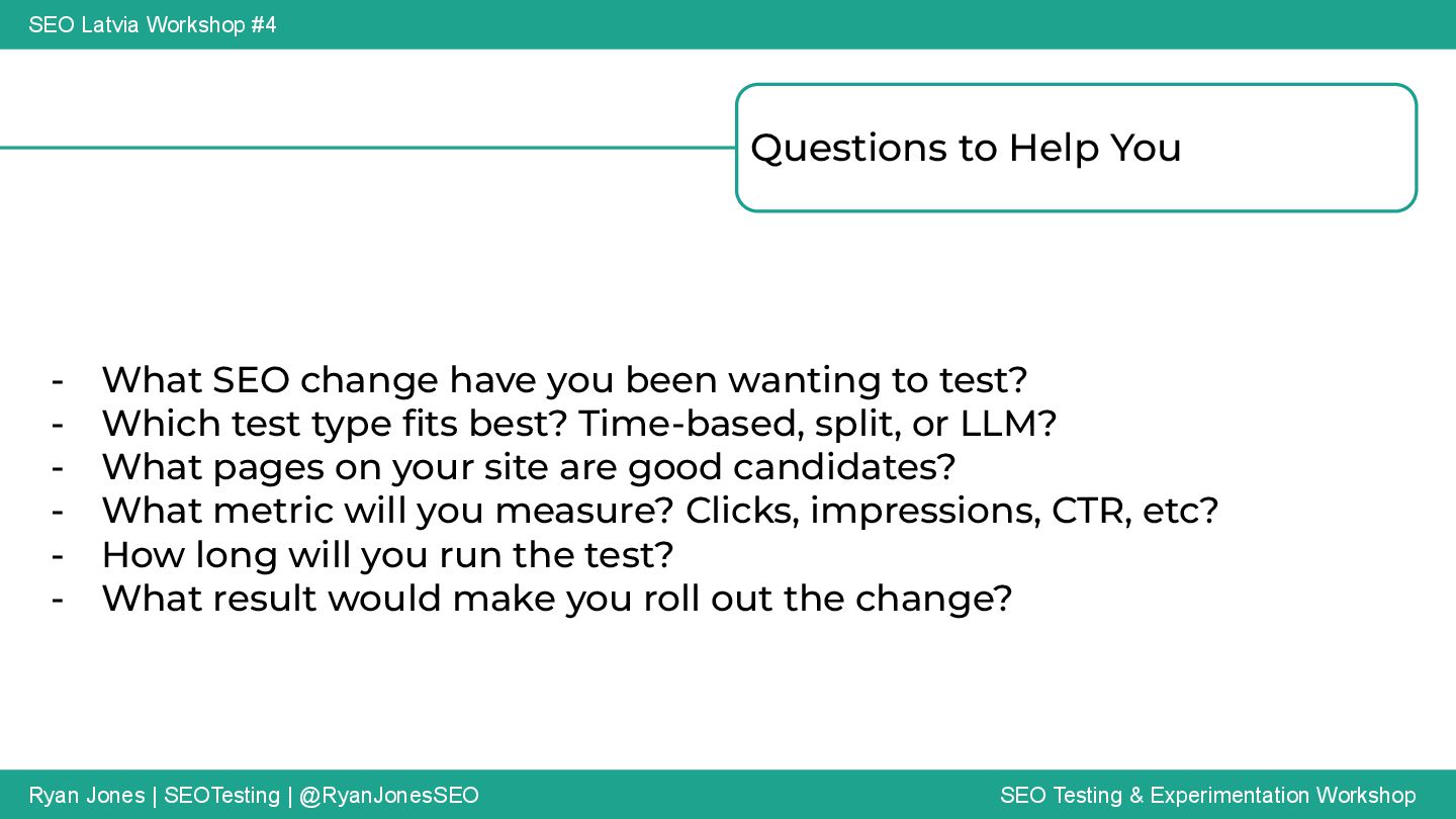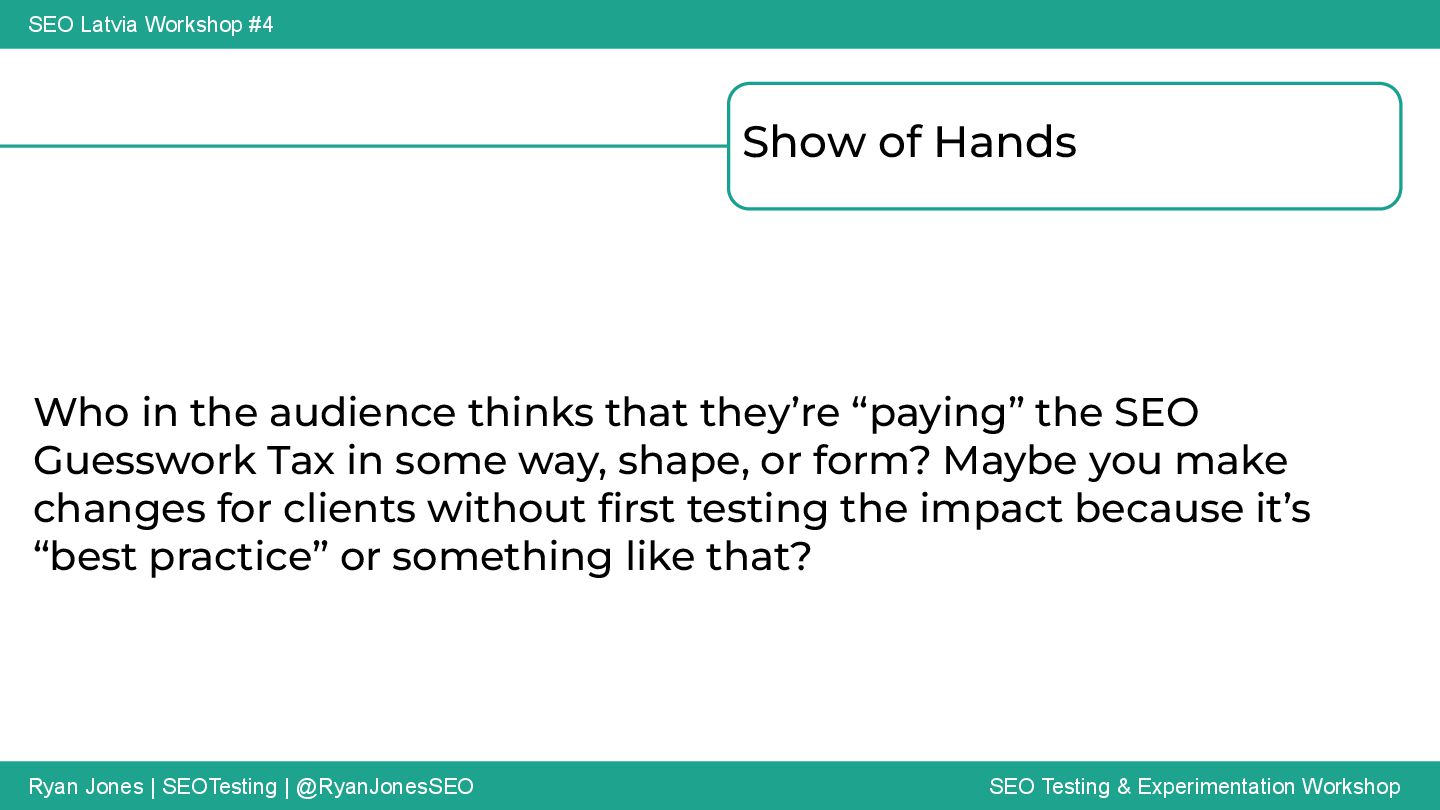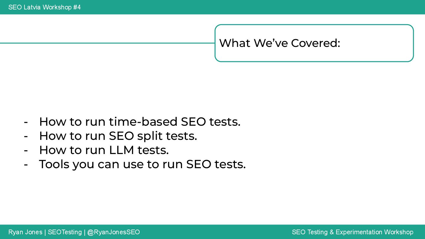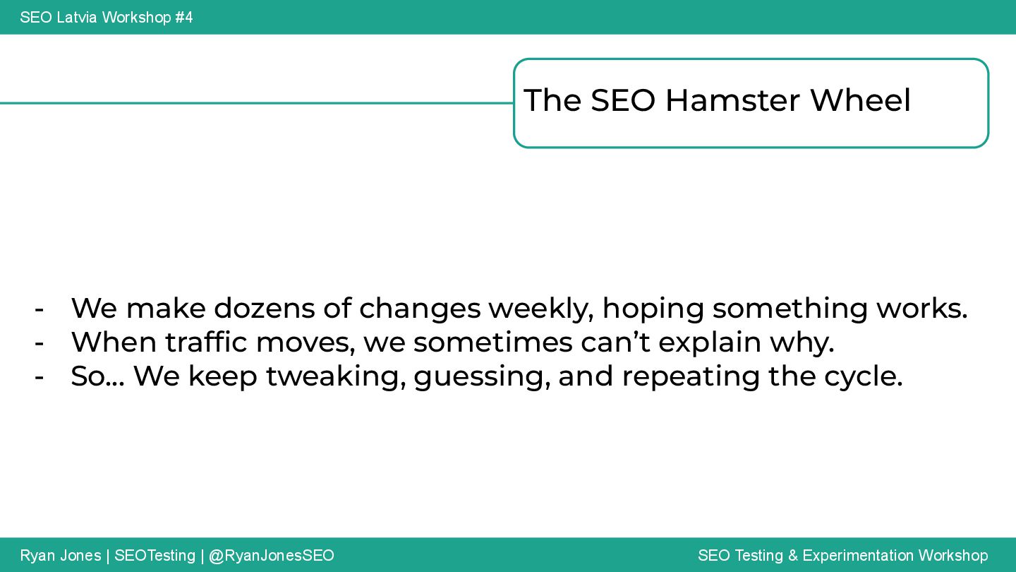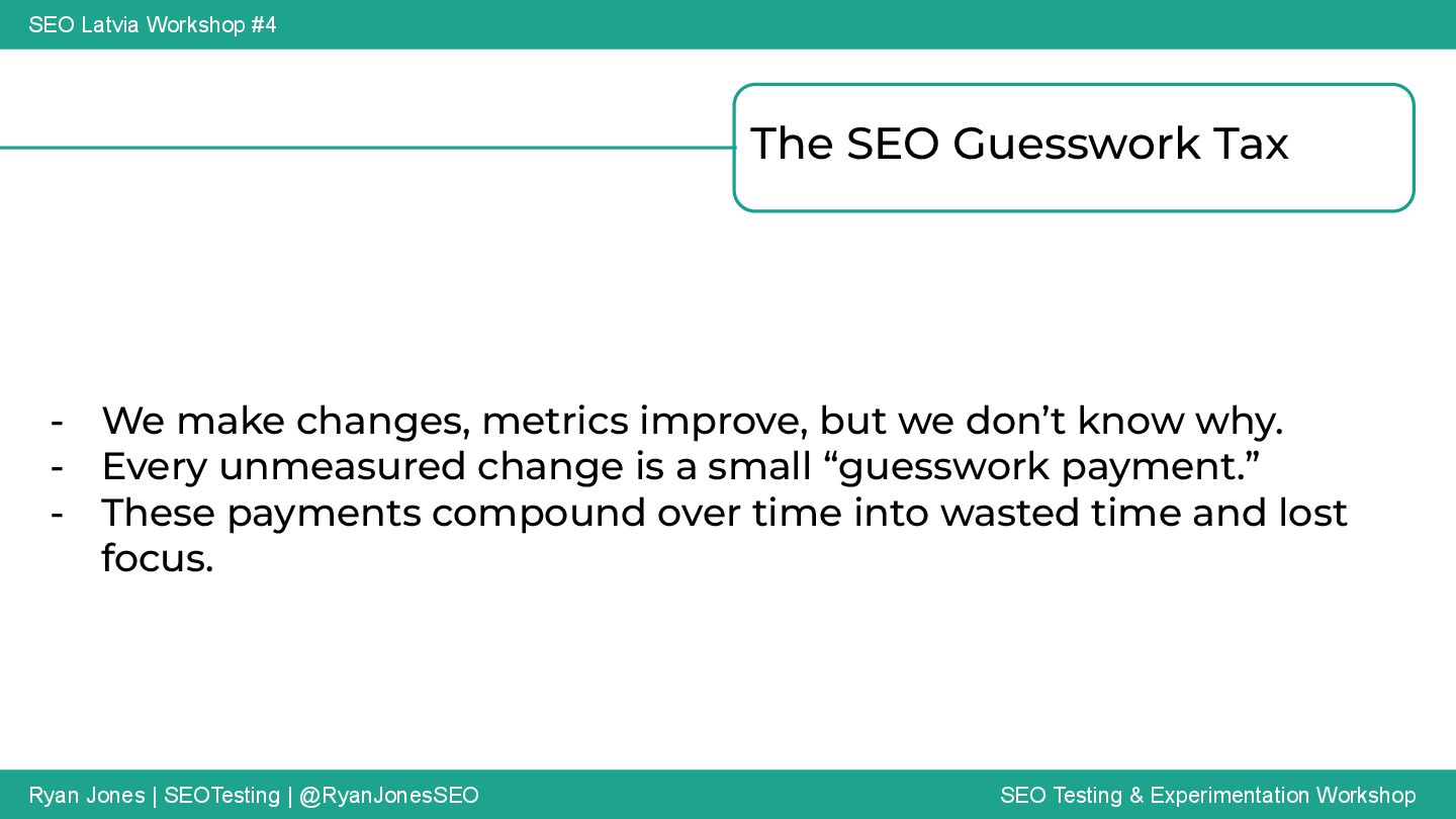 In this workshop from SEO Latvia Meetup #4, Ryan Jones (Marketing Manager at SEOTesting) walks through a complete SEO experimentation framework designed to help SEOs: