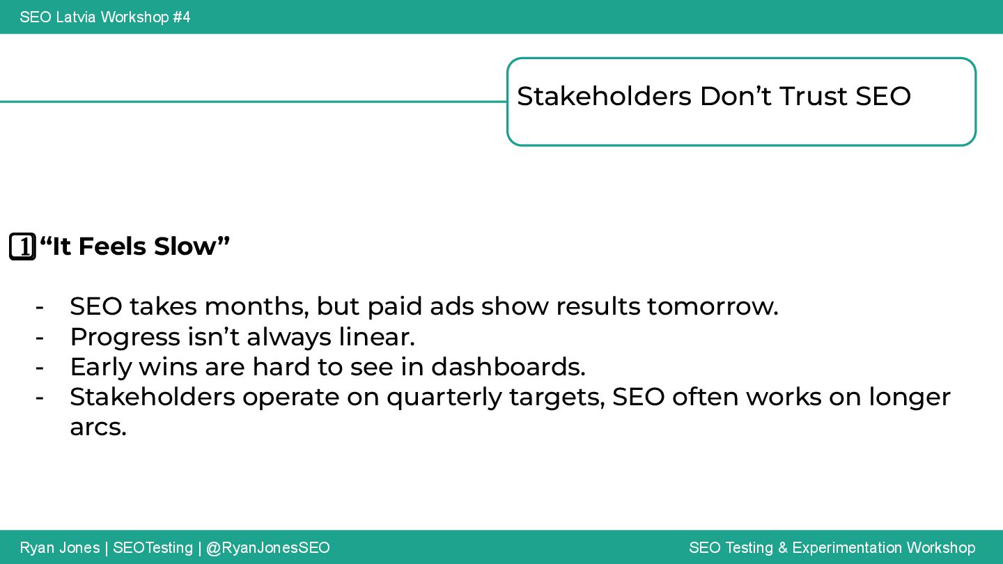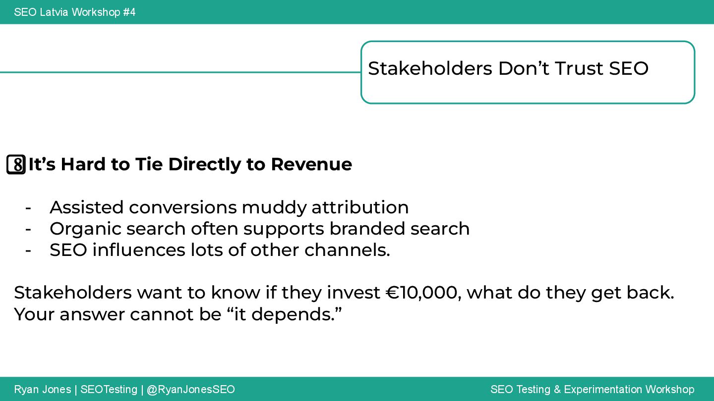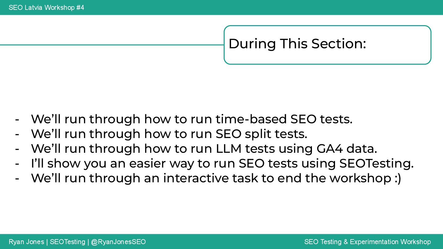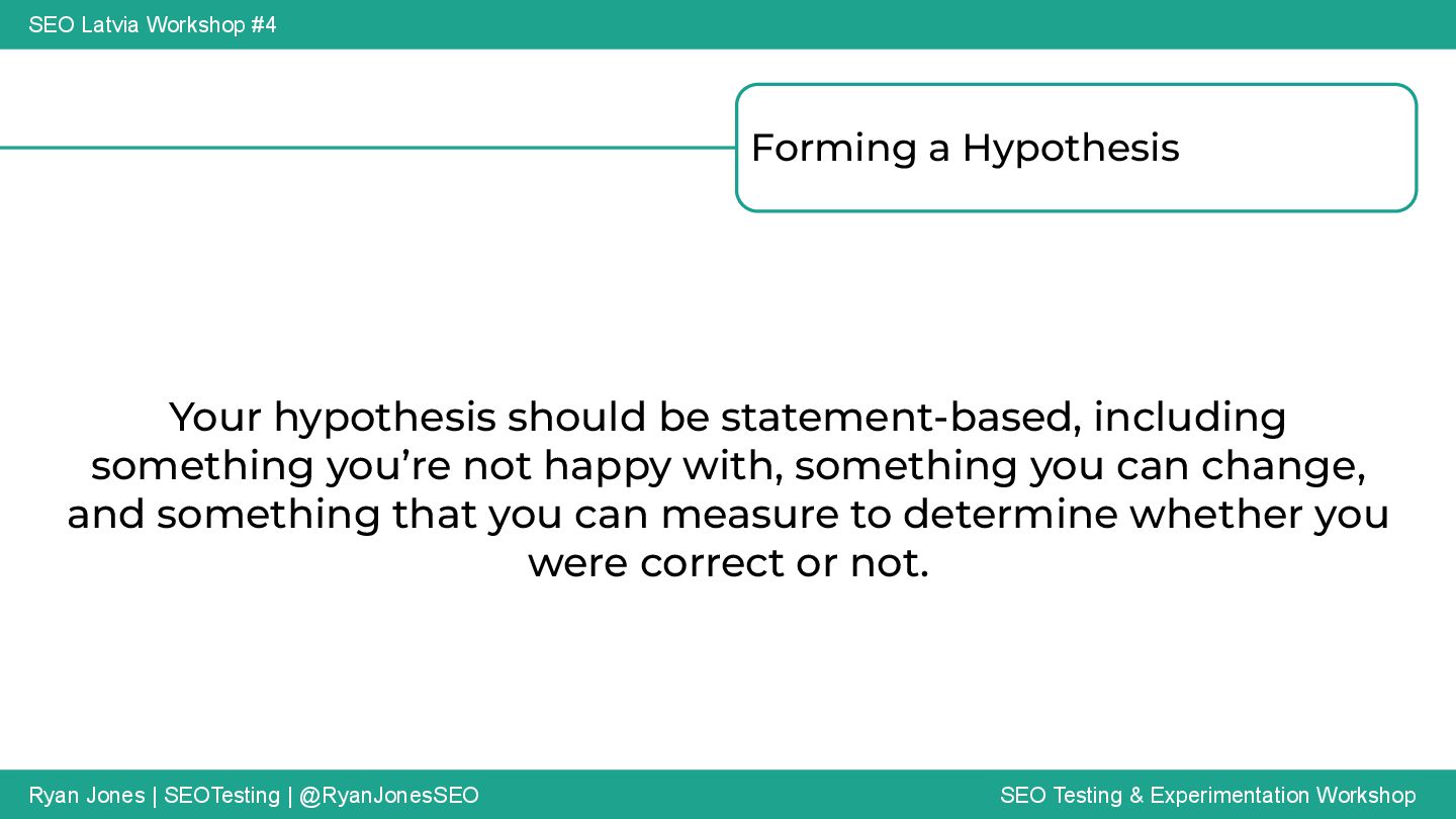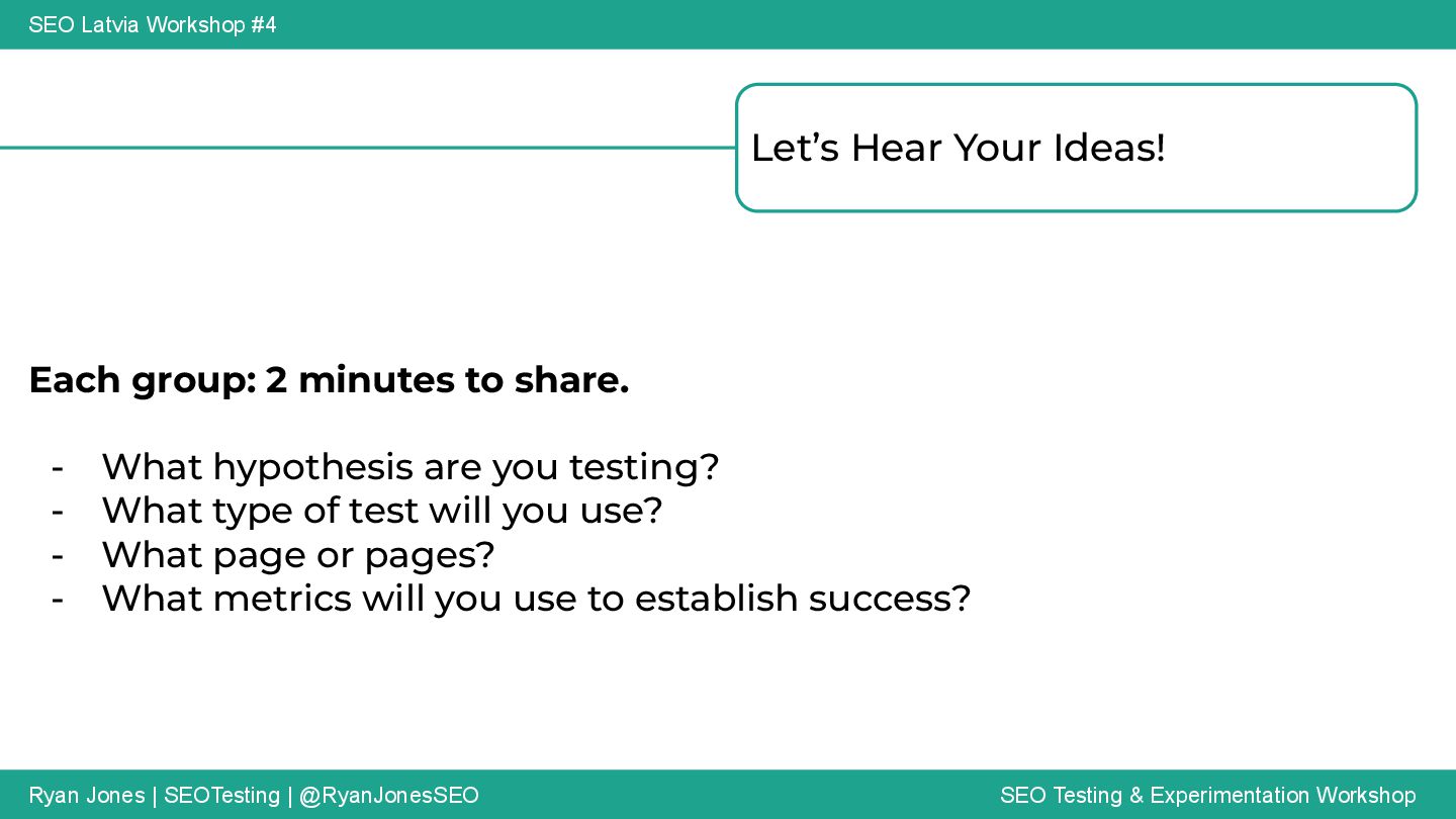 In this workshop from SEO Latvia Meetup #4, Ryan Jones (Marketing Manager at SEOTesting) walks through a complete SEO experimentation framework designed to help SEOs: