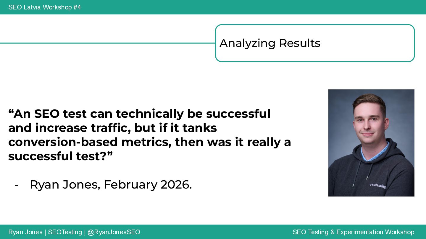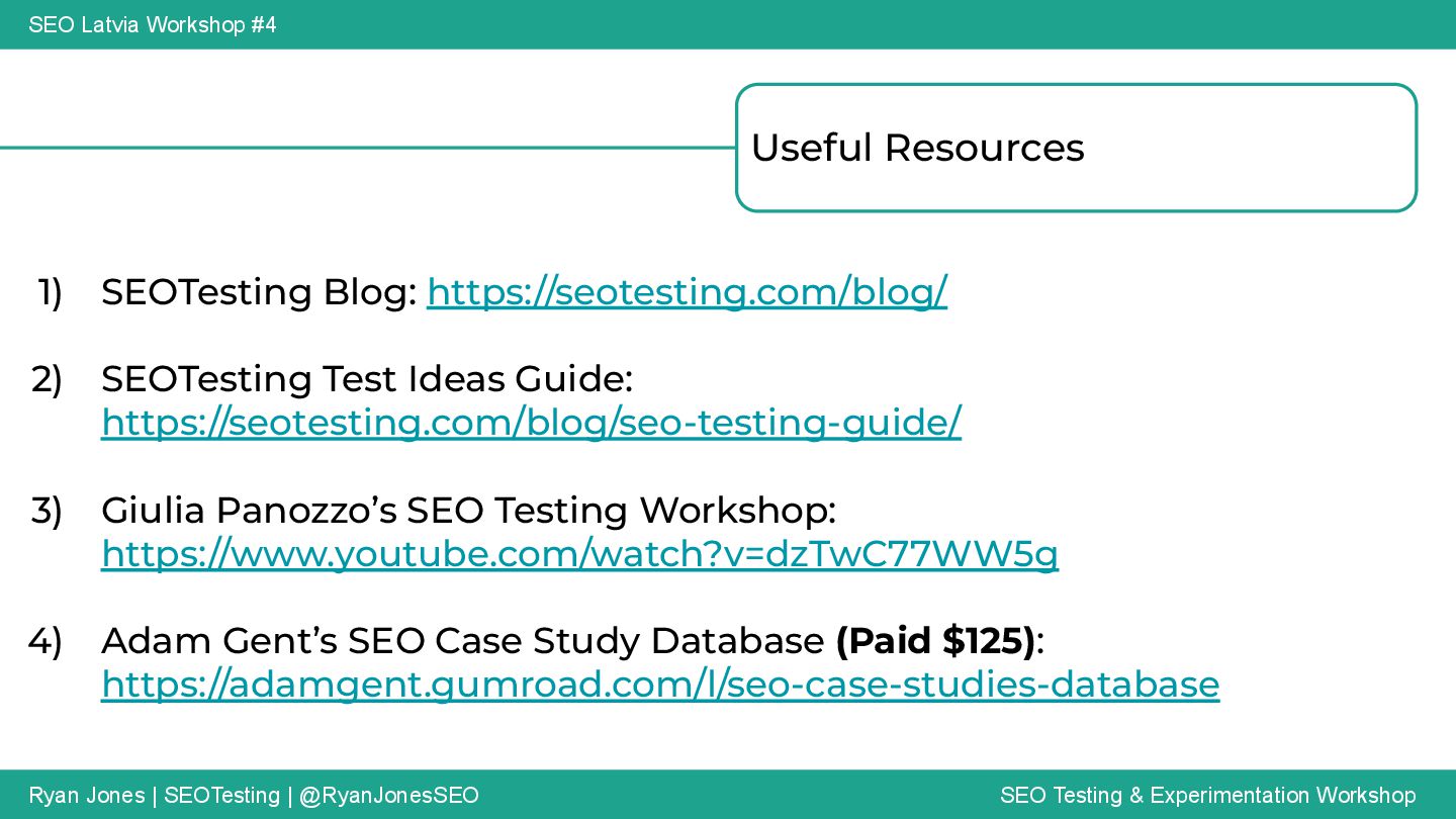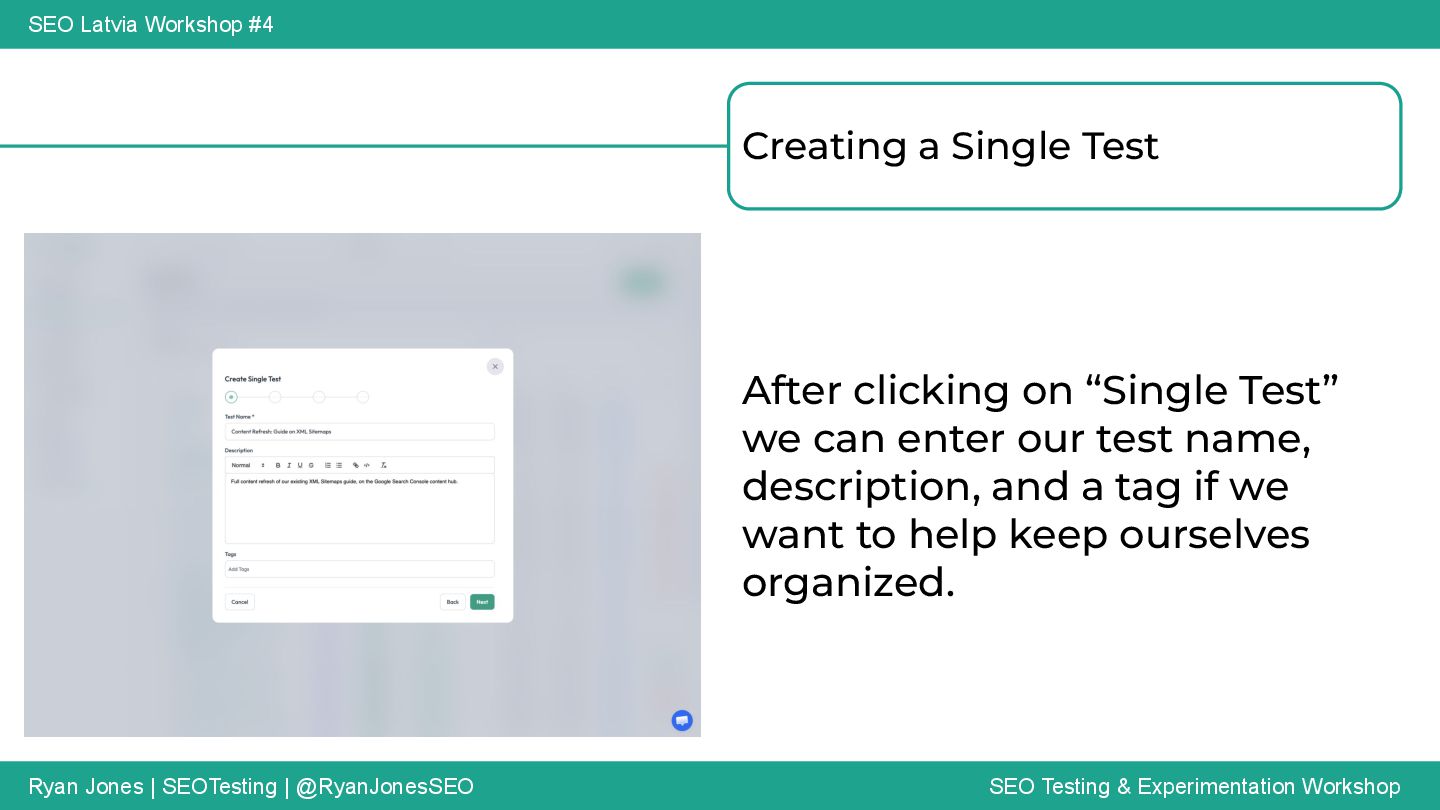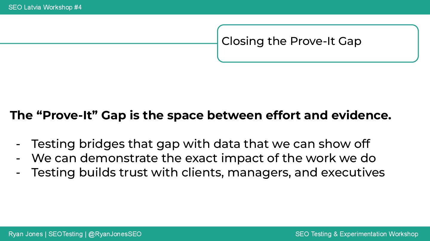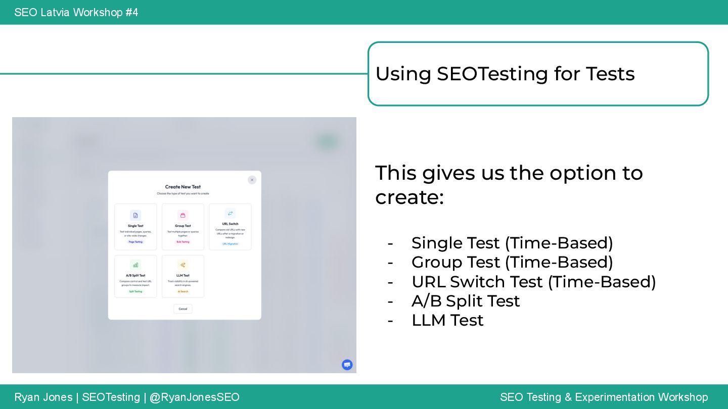 In this workshop from SEO Latvia Meetup #4, Ryan Jones (Marketing Manager at SEOTesting) walks through a complete SEO experimentation framework designed to help SEOs: