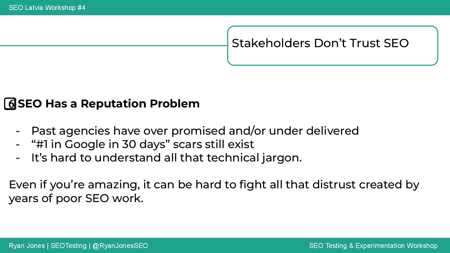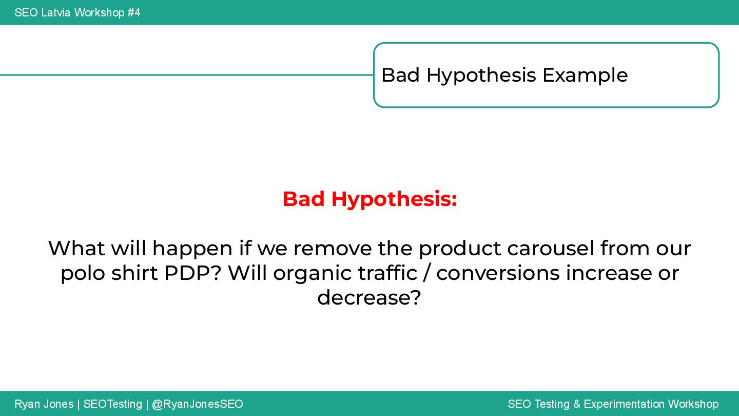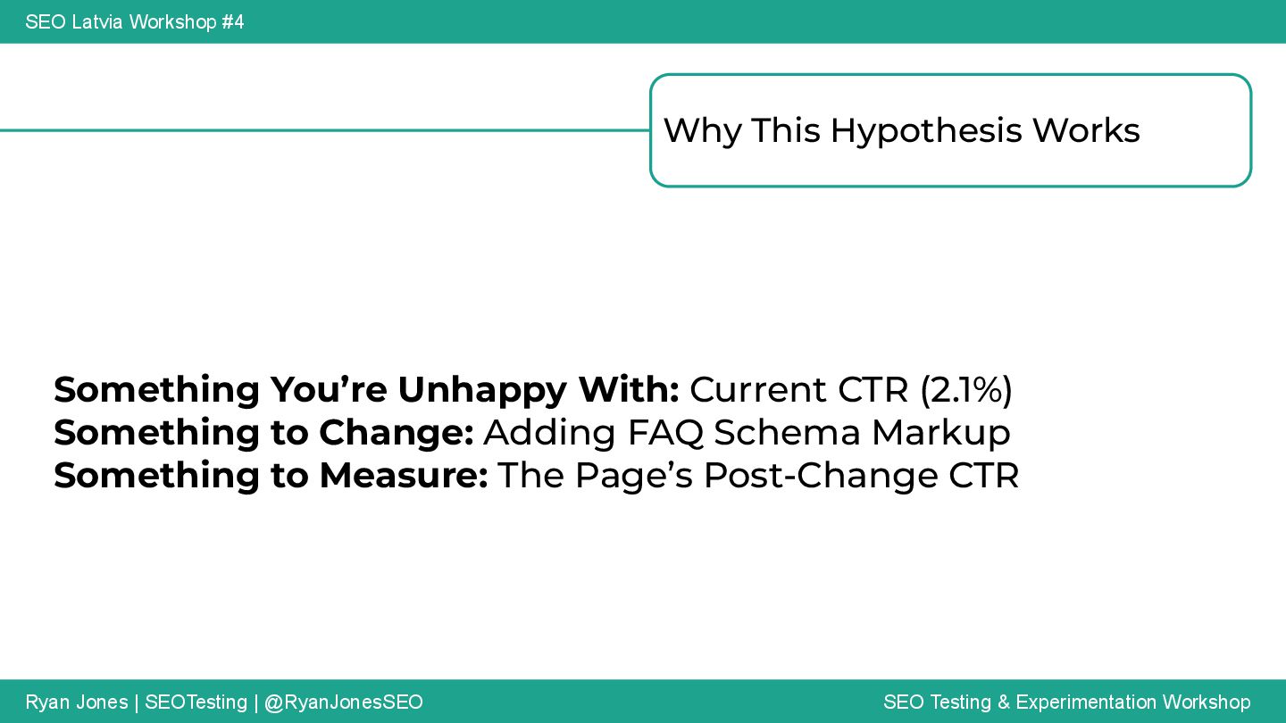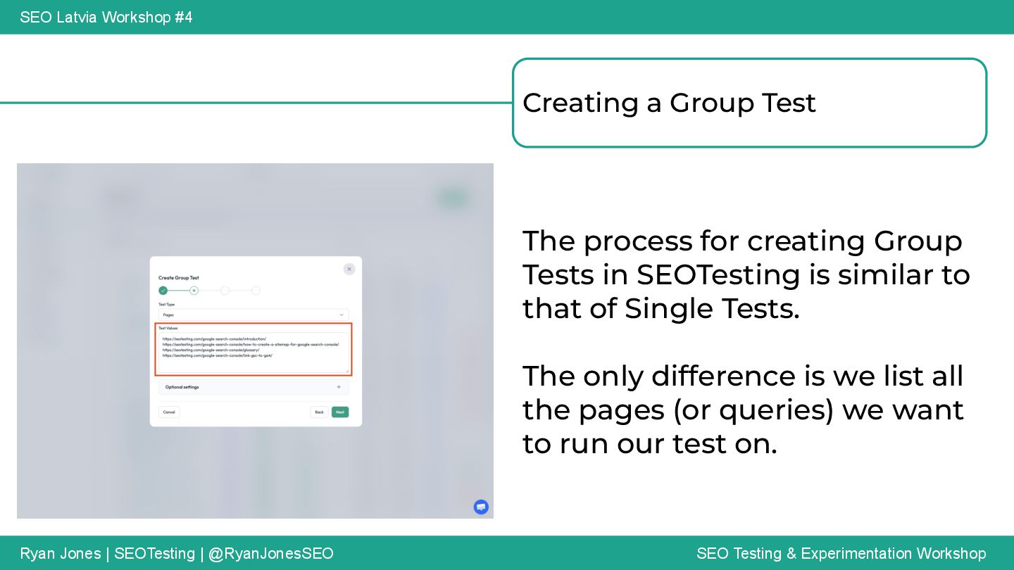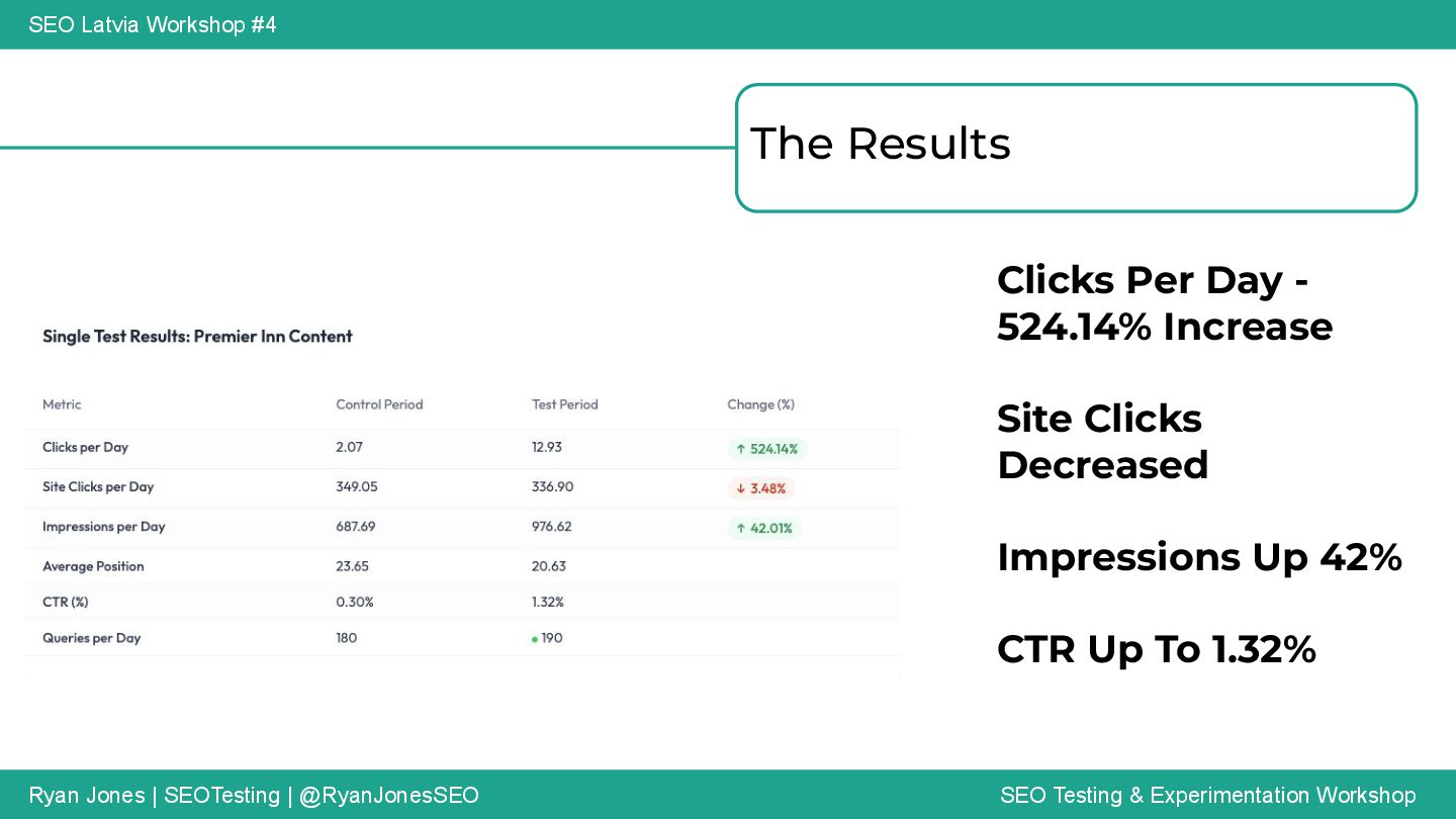 In this workshop from SEO Latvia Meetup #4, Ryan Jones (Marketing Manager at SEOTesting) walks through a complete SEO experimentation framework designed to help SEOs: