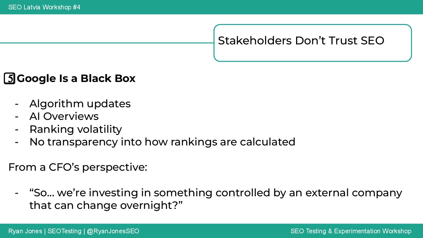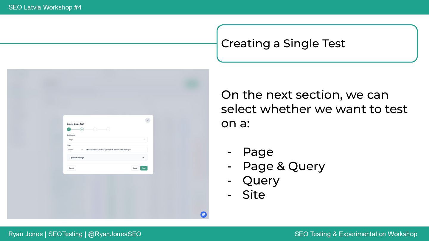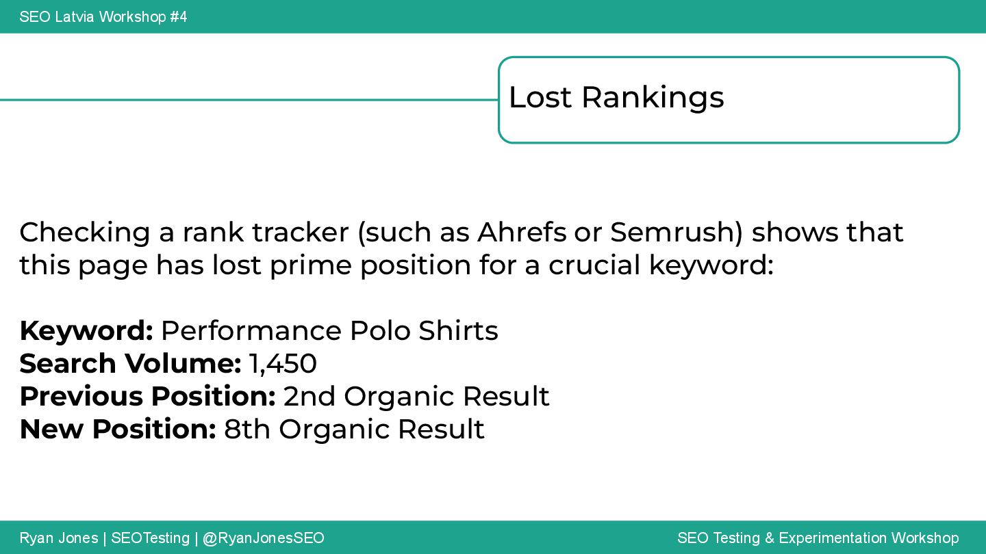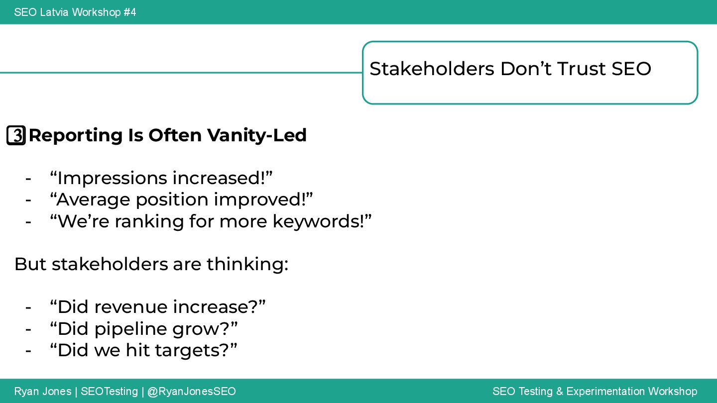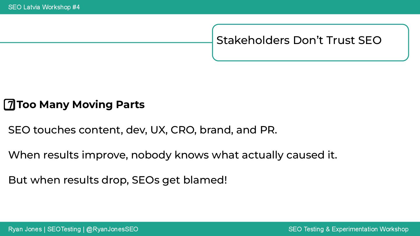 In this workshop from SEO Latvia Meetup #4, Ryan Jones (Marketing Manager at SEOTesting) walks through a complete SEO experimentation framework designed to help SEOs: