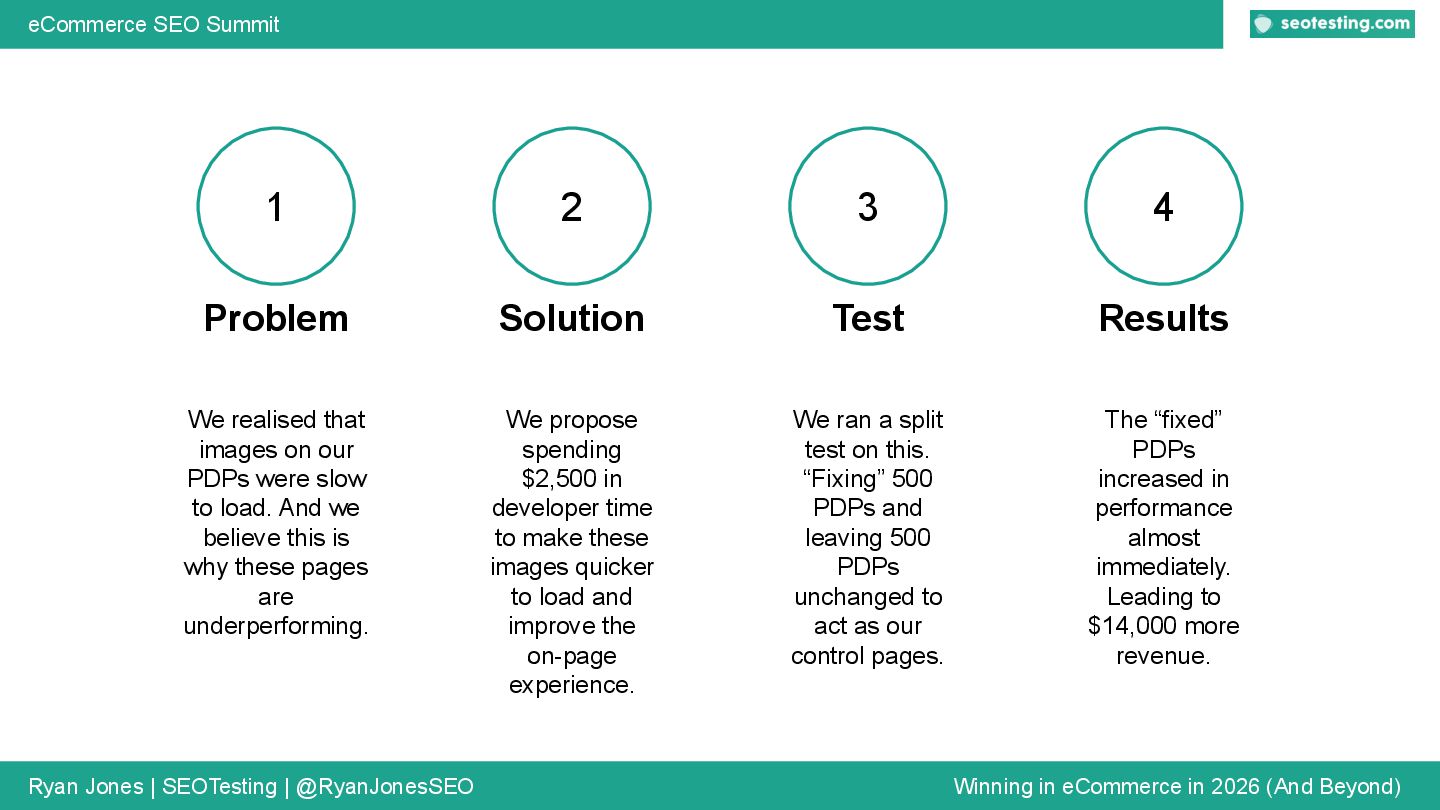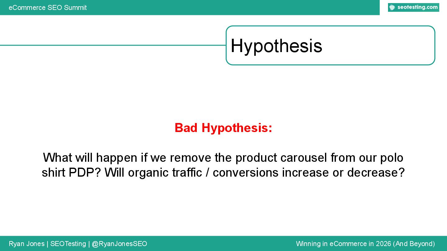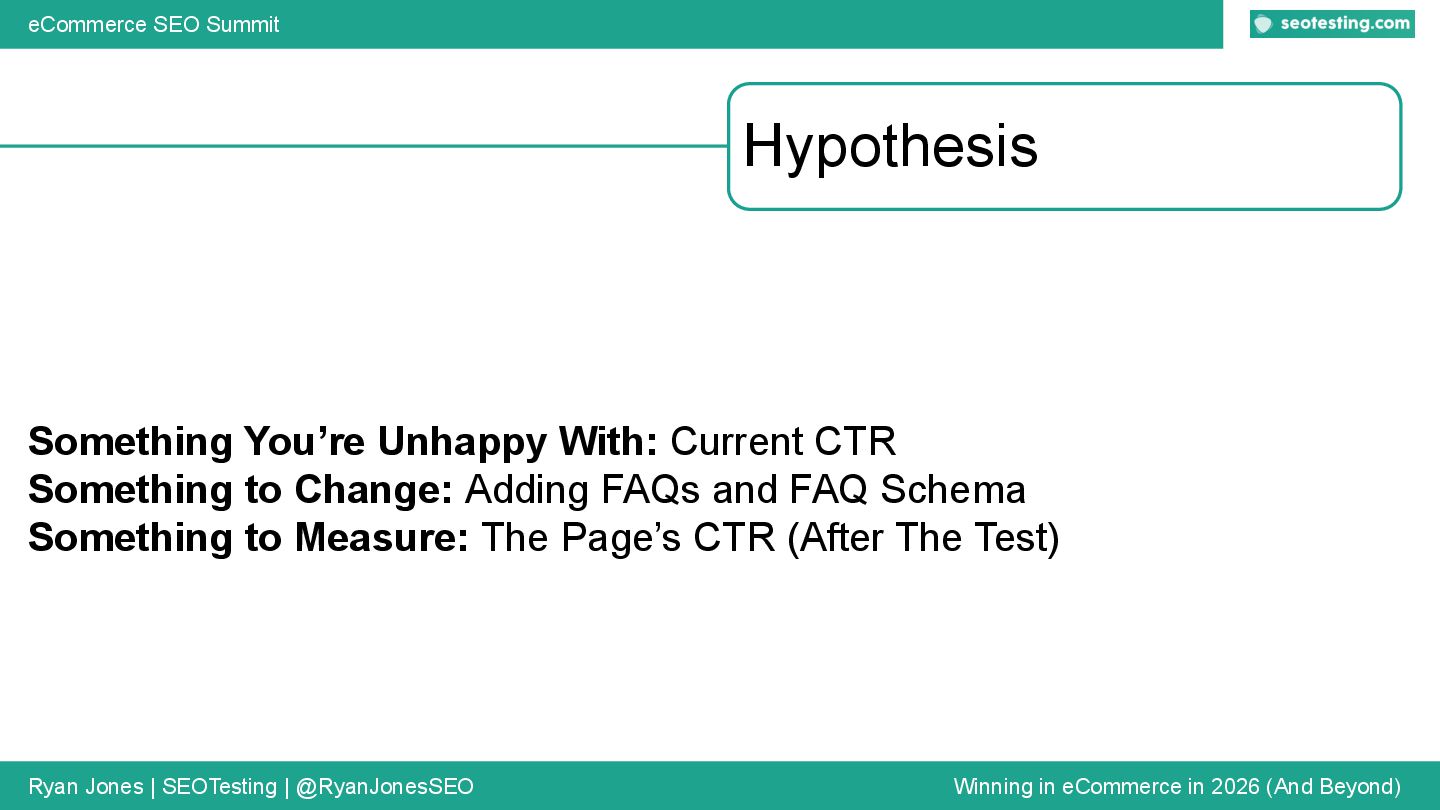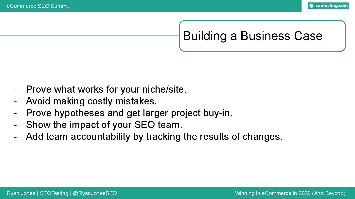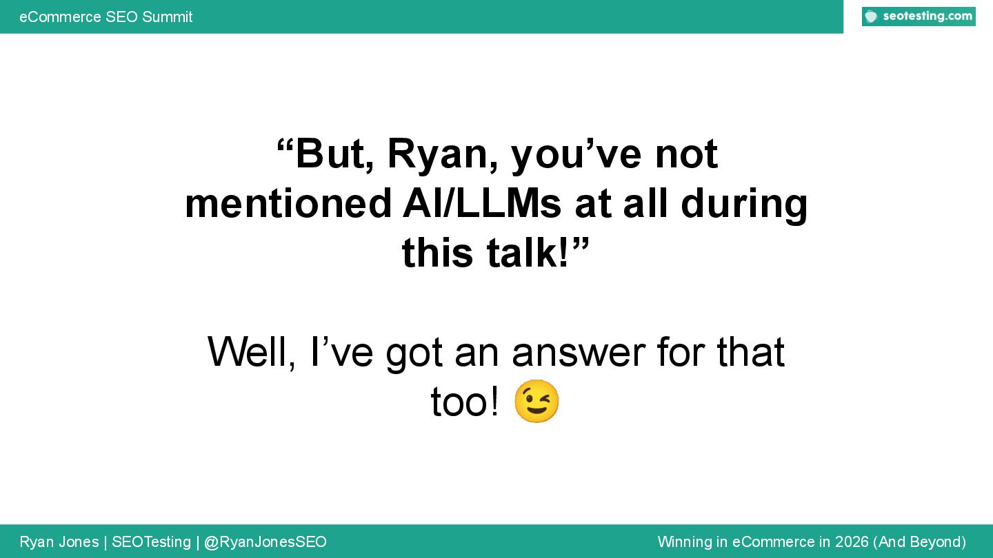 Most eCommerce teams are stuck on the SEO Hamster Wheel — constantly making changes, hoping something works, and struggling to prove what actually moved the needle. In this talk, Ryan Jones (SEOTesting) breaks down the three biggest challenges SEOs face today: lack of time, the “black box” of Google, and the constant pressure to justify impact to stakeholders.