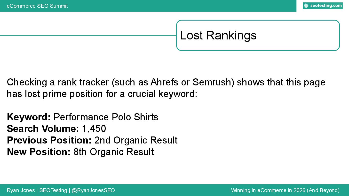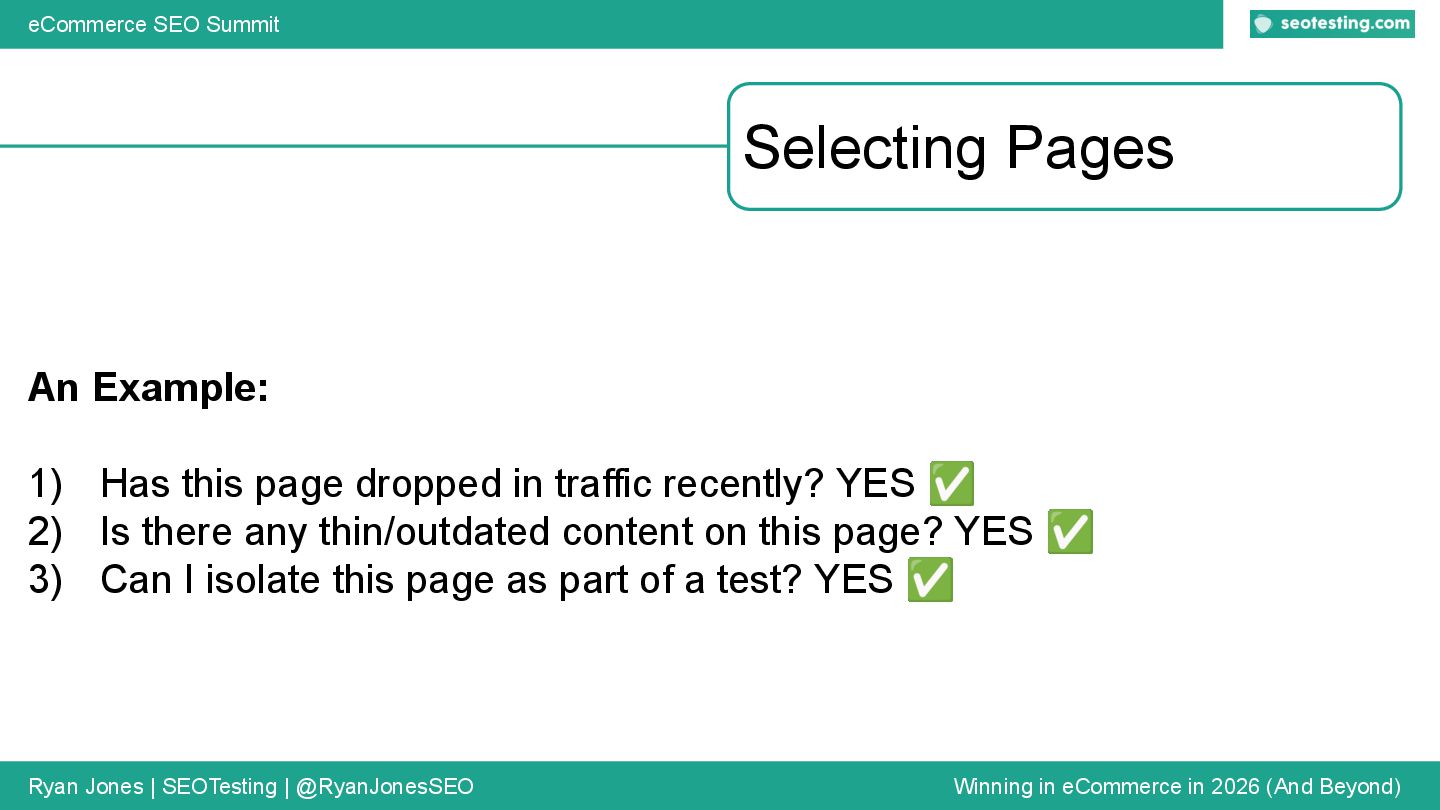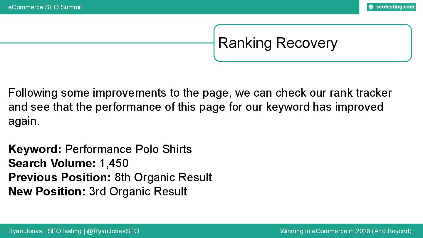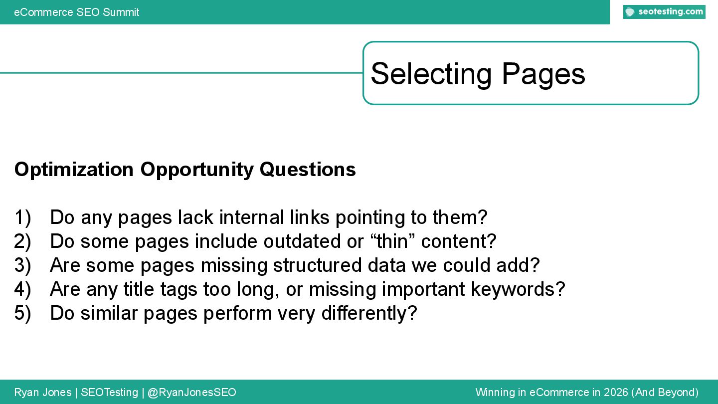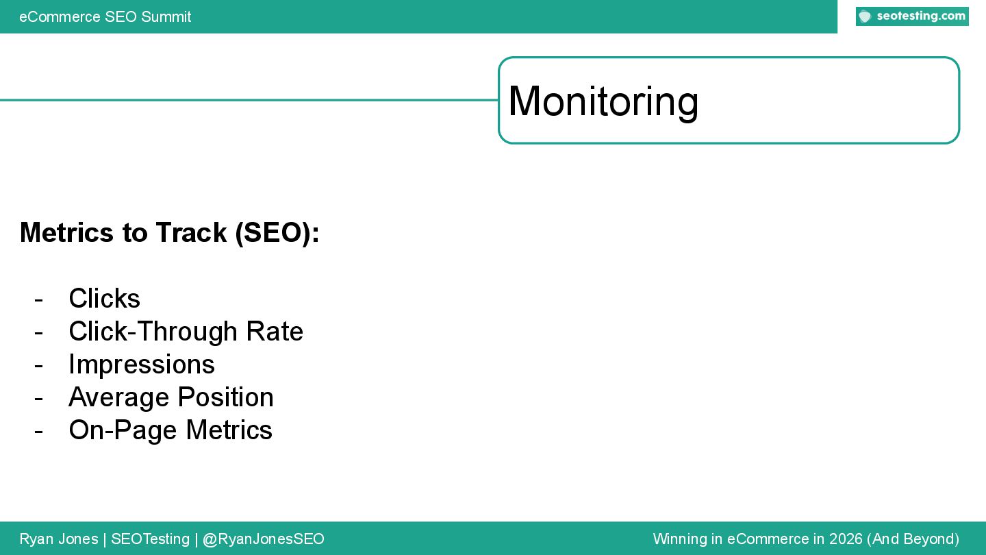 Most eCommerce teams are stuck on the SEO Hamster Wheel — constantly making changes, hoping something works, and struggling to prove what actually moved the needle. In this talk, Ryan Jones (SEOTesting) breaks down the three biggest challenges SEOs face today: lack of time, the “black box” of Google, and the constant pressure to justify impact to stakeholders.