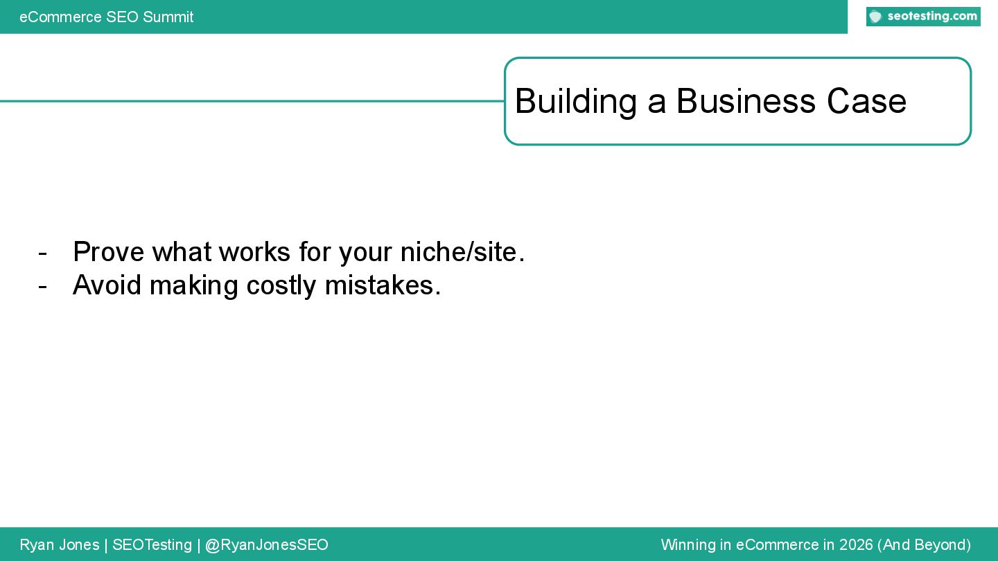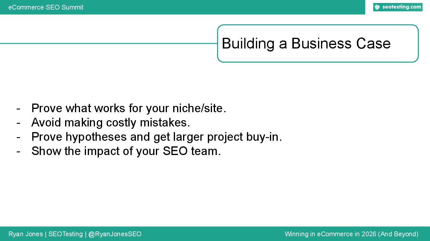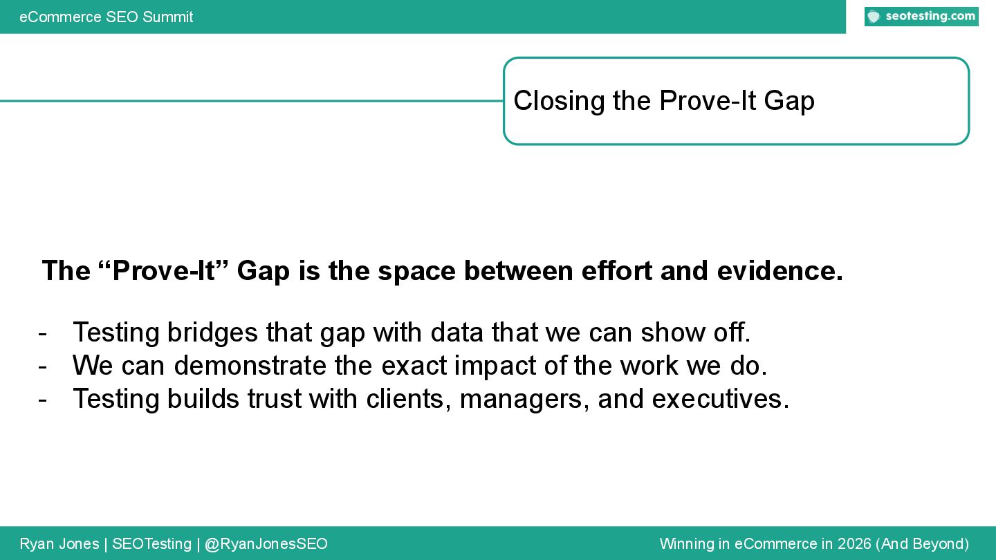 You'll learn practical frameworks to escape guesswork, eliminate the SEO Guesswork Tax, close the “Prove-It” Gap, and run SEO tests that translate directly into revenue gains — not just vanity metrics like clicks or rankings.