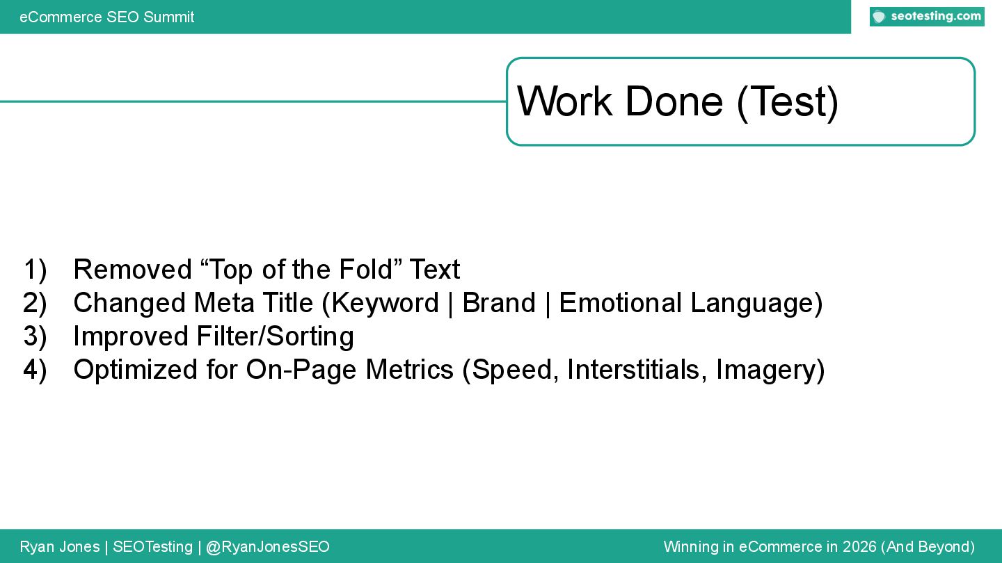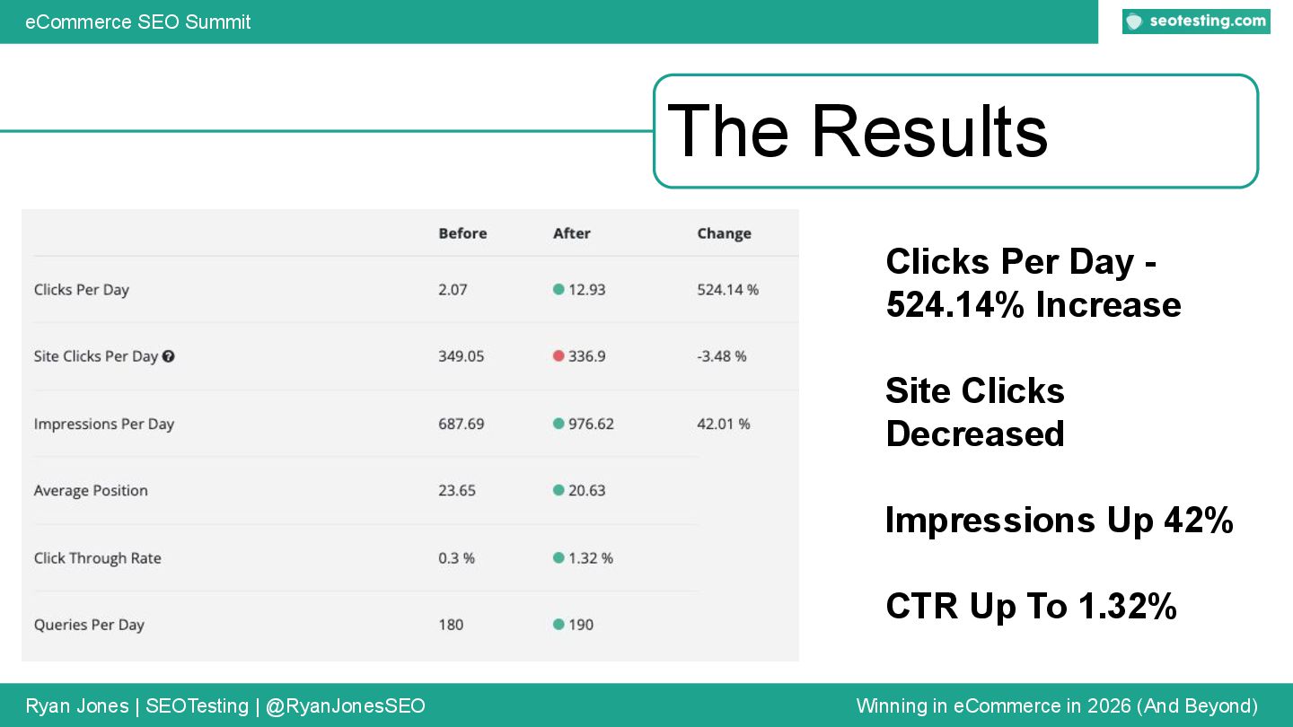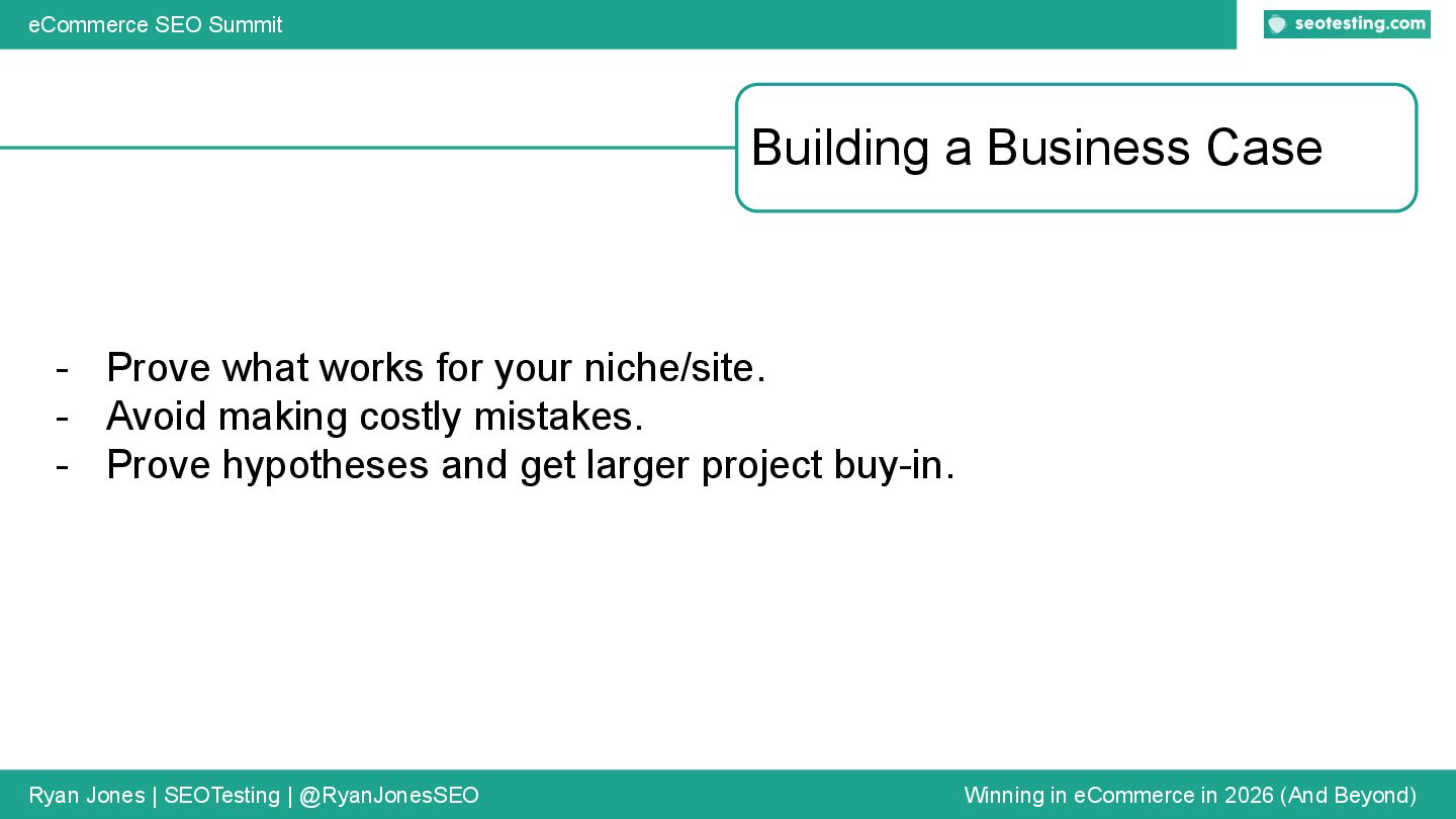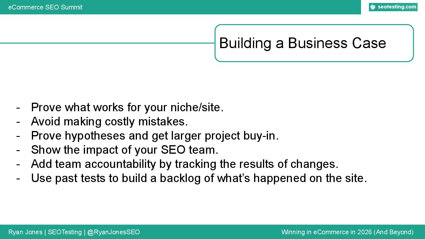 You'll learn practical frameworks to escape guesswork, eliminate the SEO Guesswork Tax, close the “Prove-It” Gap, and run SEO tests that translate directly into revenue gains — not just vanity metrics like clicks or rankings.