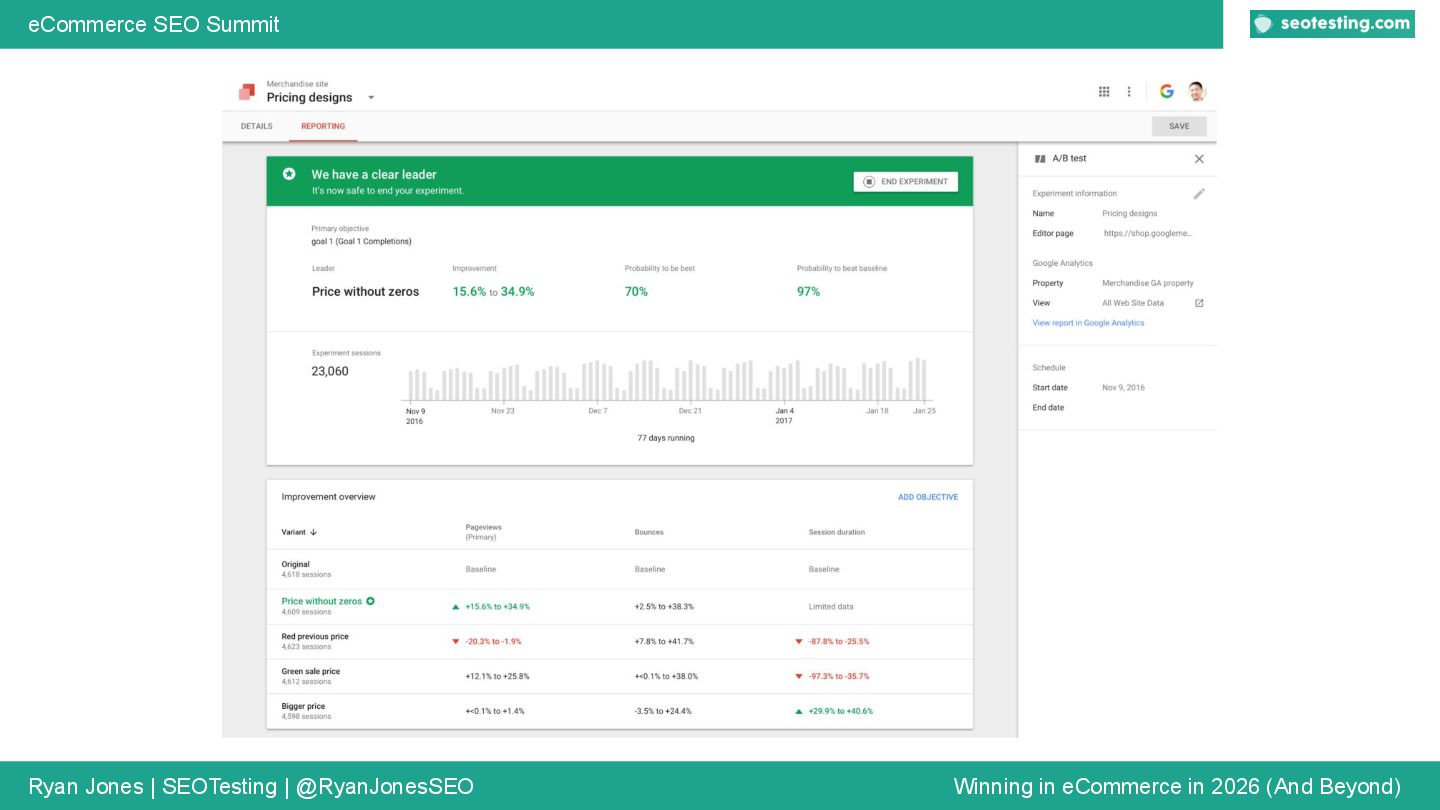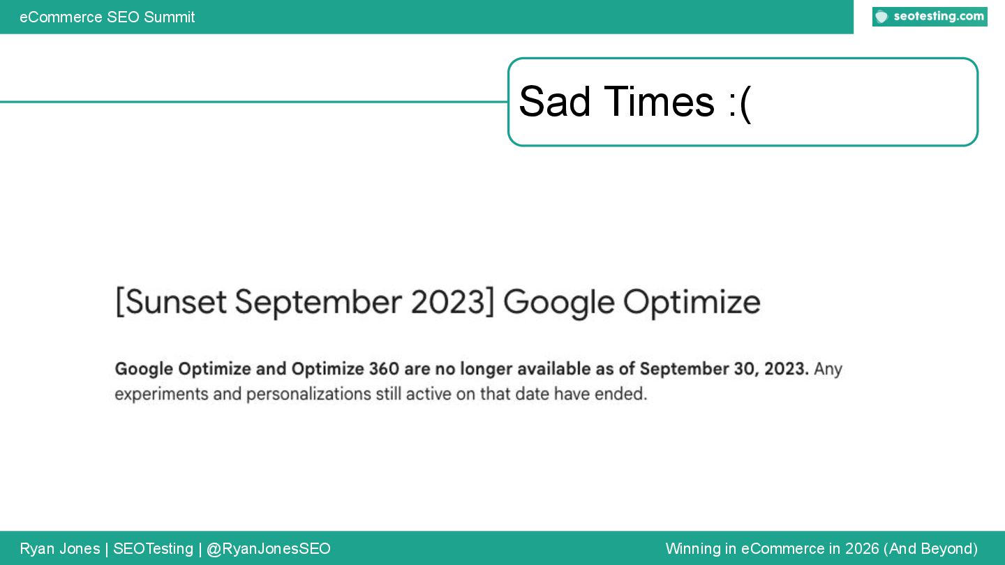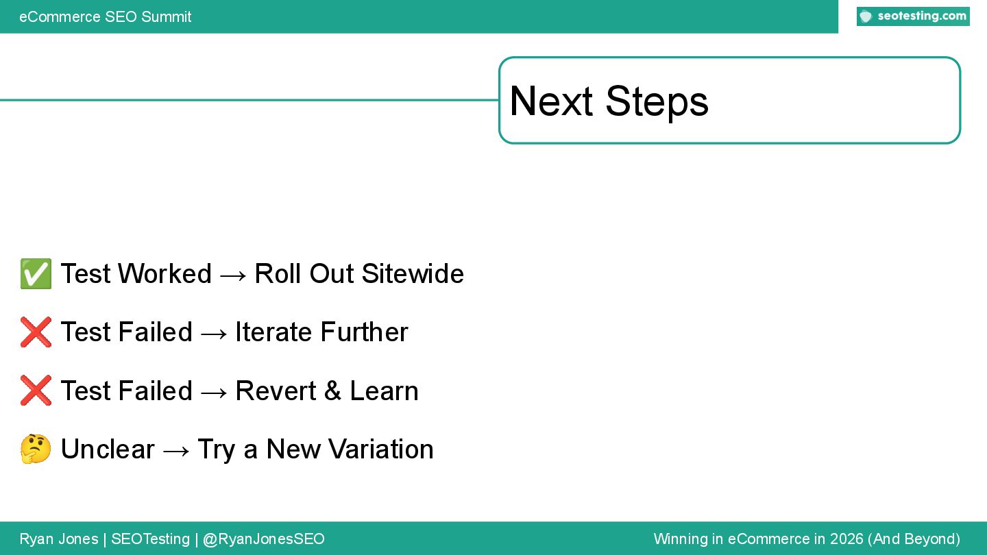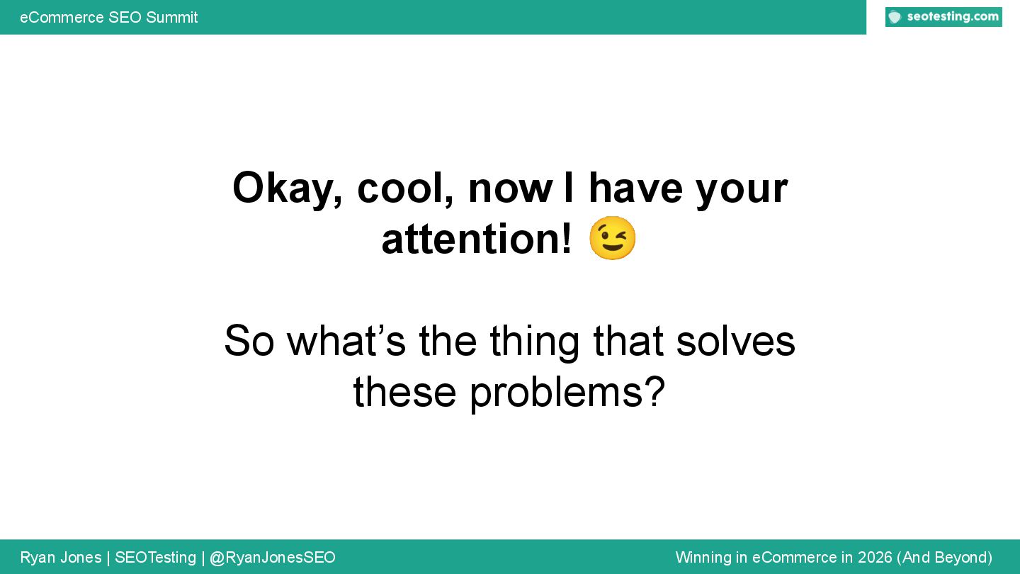 Packed with real SEO test examples (time-based and split tests), eCommerce-specific playbooks, and actionable steps you can implement immediately, this session shows how modern SEO teams can build trust, earn buy-in, and scale what works using data-driven experimentation.