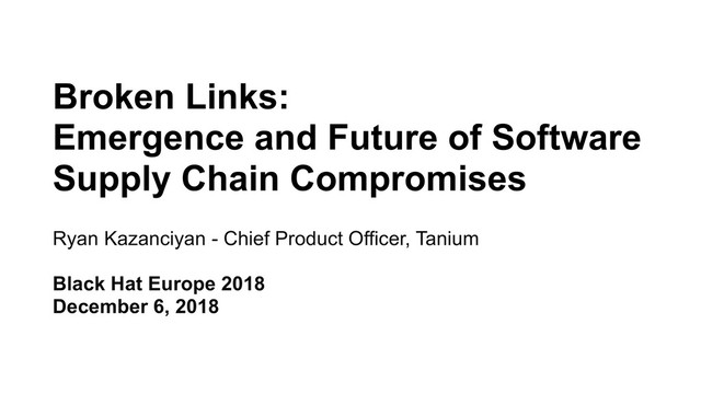 The last two years have been filled with high-profile enterprise security incidents that shared a common origin: breach of a trusted software provider. In truth, supply chain attacks have played a key role in numerous targeted and opportunistic attacks - many of which flew under the radar - for years. This presentation examines the emergence of software supply chain compromises; the factors incentivizing attackers to adopt this approach; and practical approaches to risk mitigation and defense that enterprises can take in response.