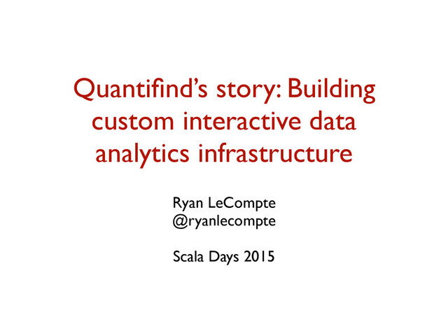 Building interactive data analytics products on top of large volumes of data is challenging. This talk will outline Quantifind's infrastructure story for building analytics software. We will describe the infrastructure that we originally built on top of existing systems such as Spark/Hadoop. However, the bulk of this talk will focus on a new, custom distributed system that we have built in-house for our predictive analytics software. This new system includes a distributed, in-memory, real-time computing platform that supports fast interactive querying against large volumes of compacted raw data that isn't pre-aggregated. This infrastructure can be viewed as an in-memory combination of map/reduce style computation and indexed structures built from bit sets to offsets in the compacted data. Akka Cluster sits at the core of this system for distributed communication between nodes. We will discuss why we chose to build our own system as well as tips and tricks that we've learned along the way for pushing the JVM for these types of systems.