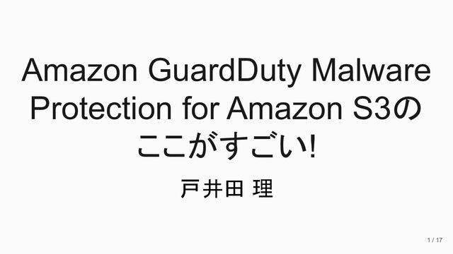 Amazon GuardDuty Malware Protection for Amazon S3の ここがすごい! 戸井田 理