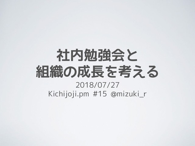社内勉強会と 組織の成長を考える 2018/07/27 Kichijoji.pm #15 @mizuki_r