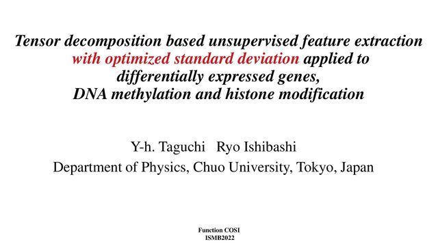 optimized standard deviation applied to differentially expressed genes, DNA methylation and histone modification Y-h. Taguchi Ryo Ishibashi Department of Physics, Chuo University, Tokyo, Japan