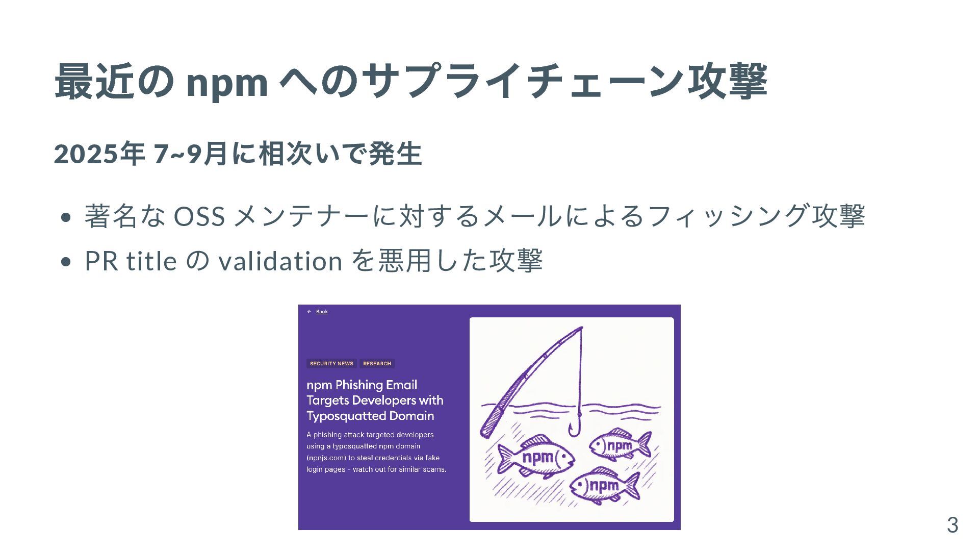 最近の npm へのサプライチェーン攻撃 2025 年 7~9 月に相次いで発生 著名な OSS メンテナーに対するメールによるフィッシング攻撃