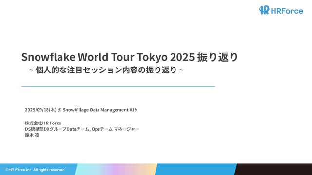 2025 振り返り  ~ 個⼈的な注⽬セッション内容の振り返り ~ 2025/09/18(⽊) @ SnowVillage Data Management #19 株式会社HR Force DS統括部DXグループDataチーム, Opsチーム マネージャー 鈴⽊ 凌