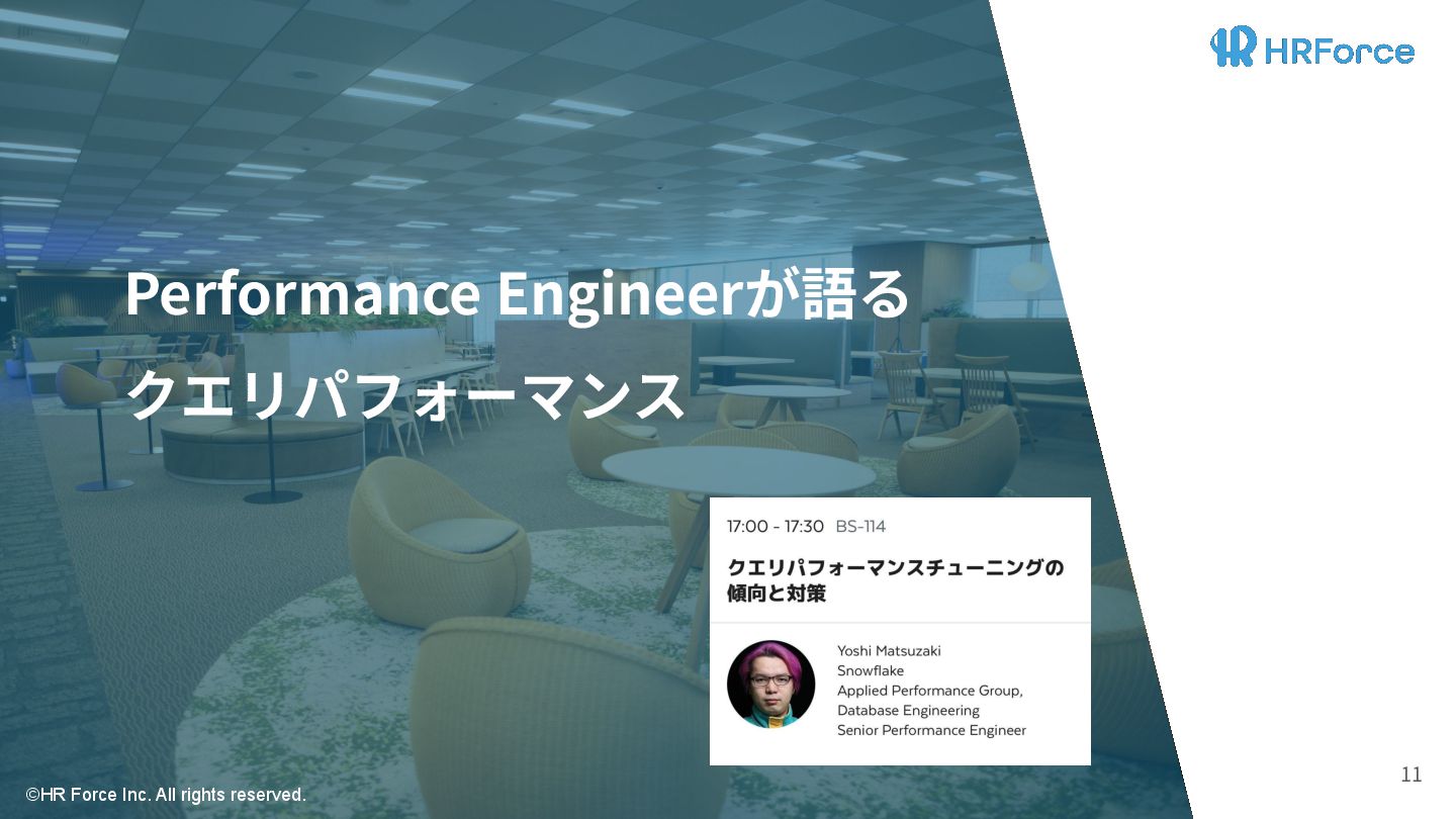 11. ©HR Force Inc. All rights reserved. 18 Performance Engineerが語るクエリパフォーマンス パフォーマンス改善の論点とベストプラクティス