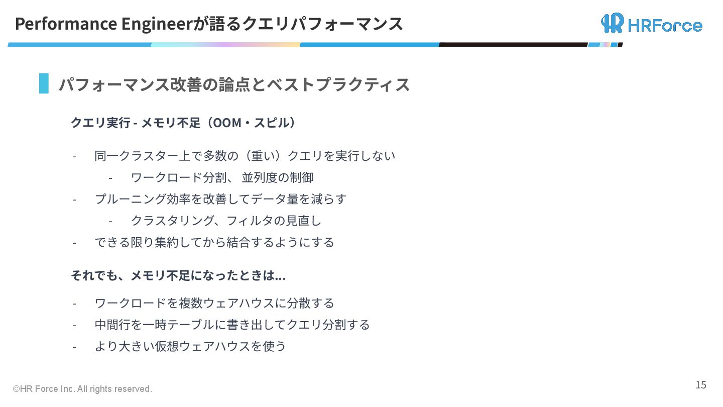 7. ©HR Force Inc. All rights reserved. 14 Performance Engineerが語るクエリパフォーマンス パフォーマンス改善の論点とベストプラクティス