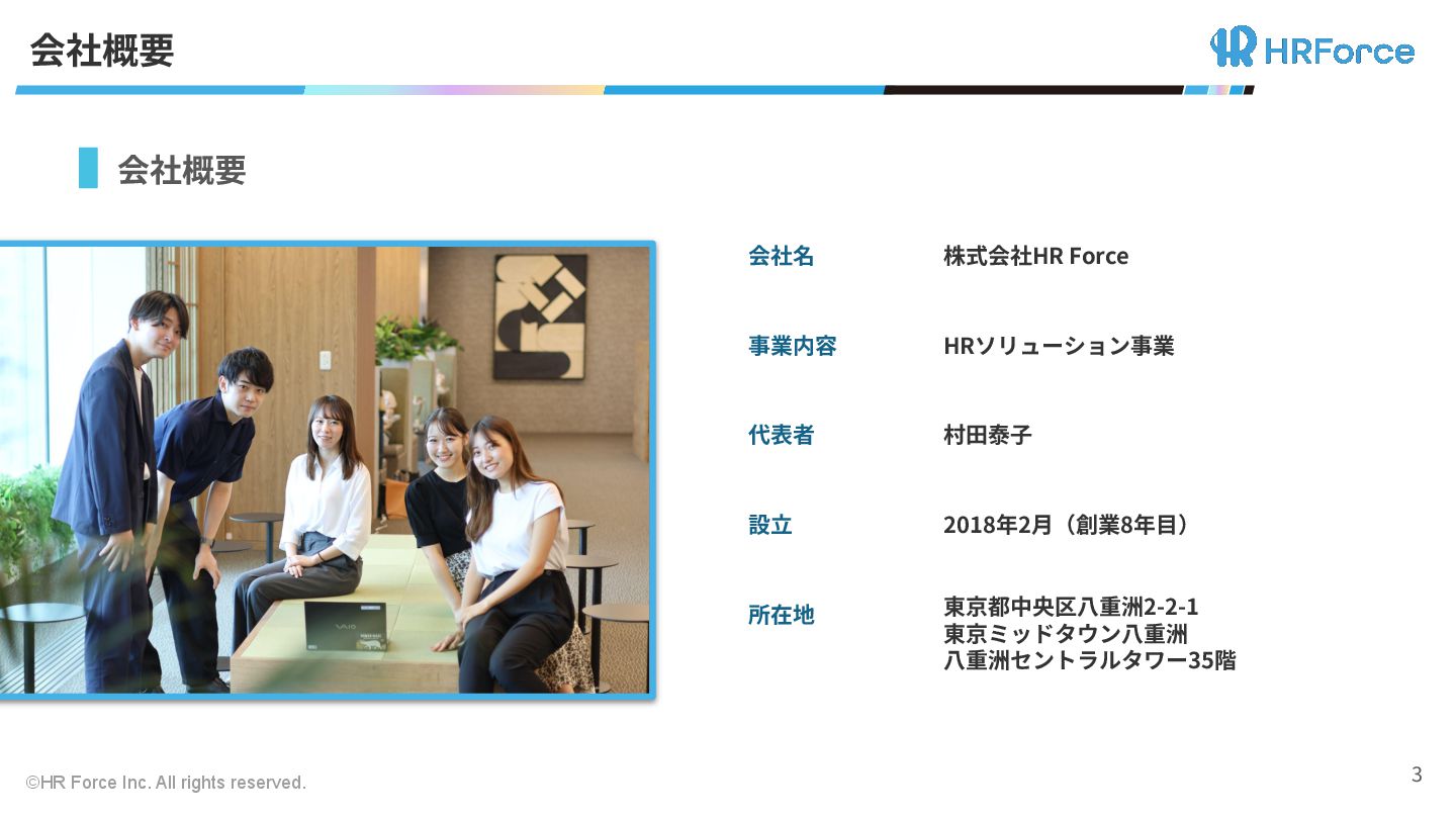 3. ©HR Force Inc. All rights reserved. 会社概要 3 株式会社HR Force
