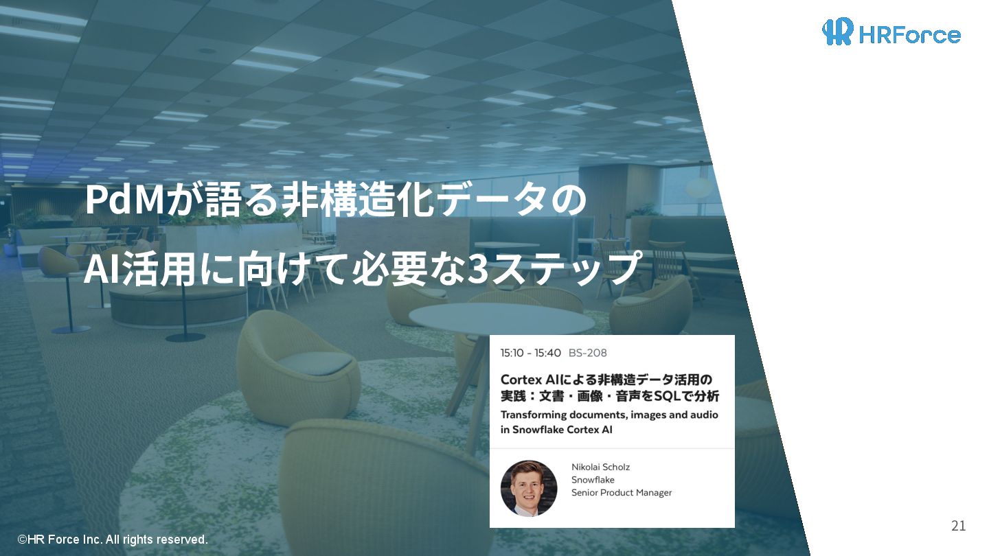 18. ©HR Force Inc. All rights reserved. 28 PdMが語る⾮構造化データのAI活⽤に向けて必要な3ステップ まとめ -